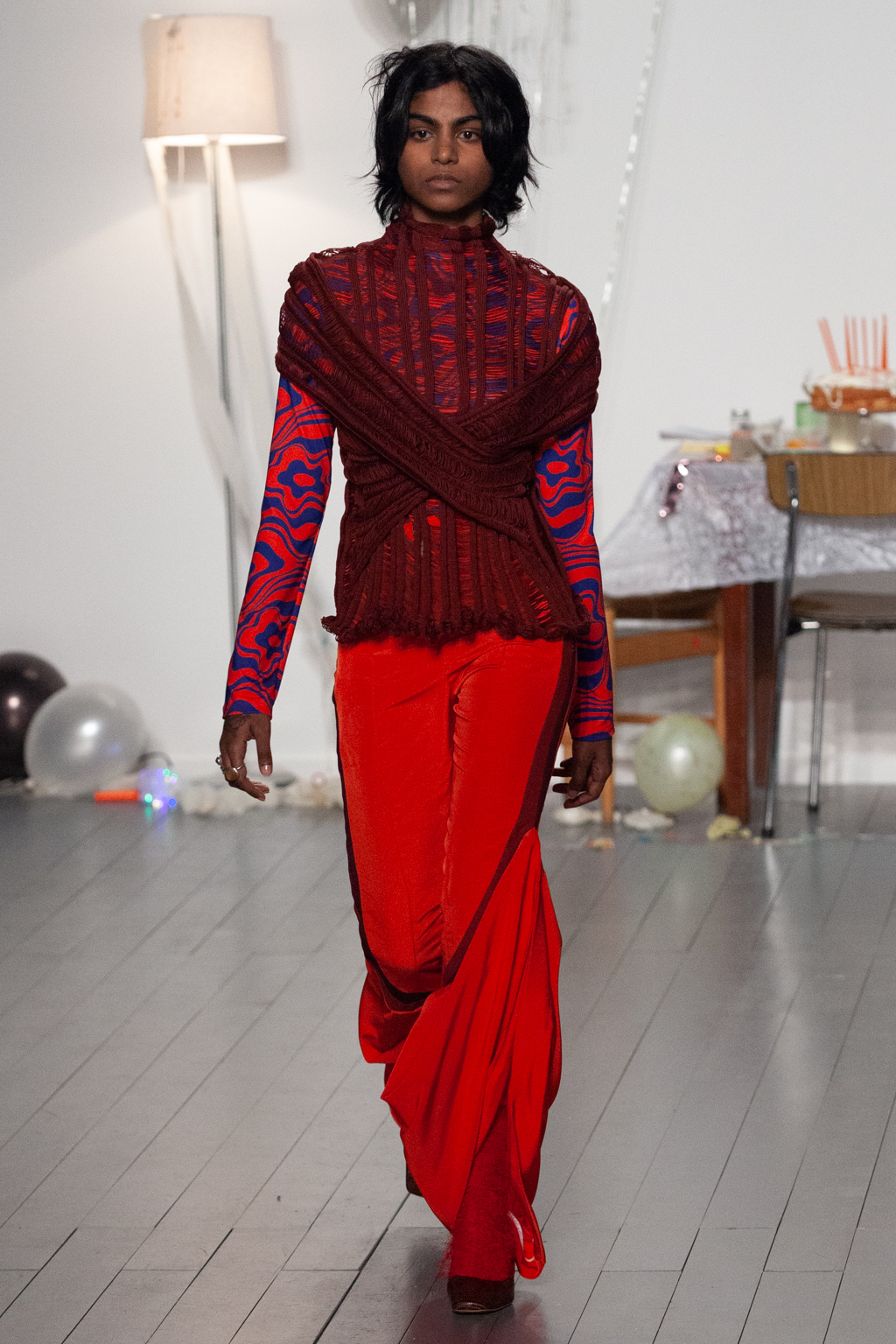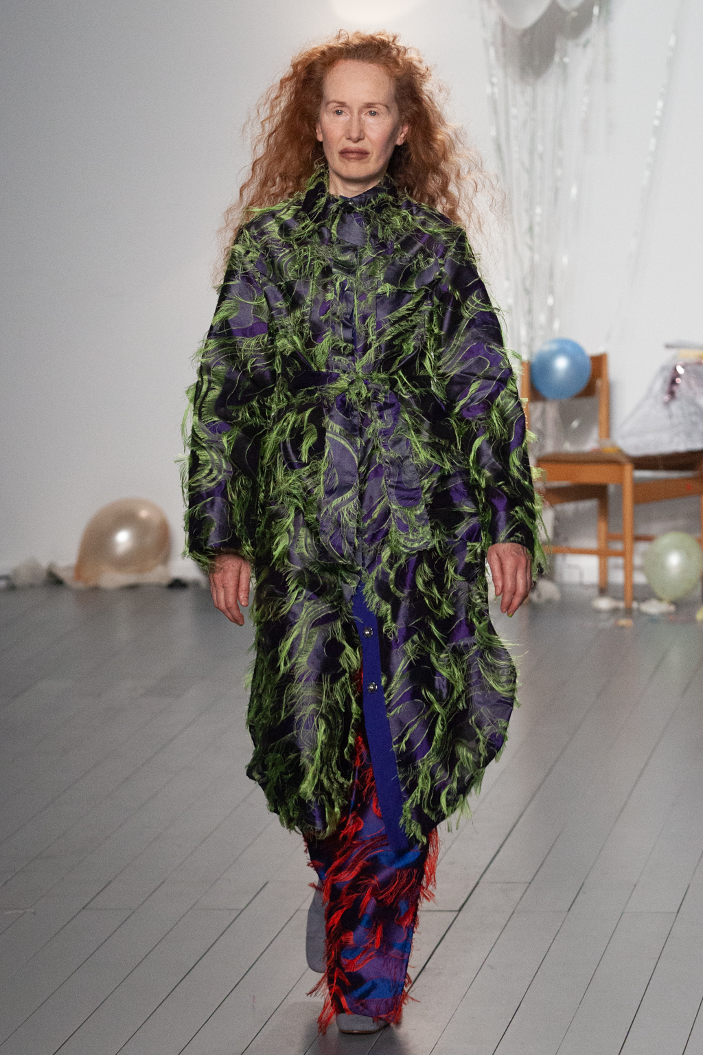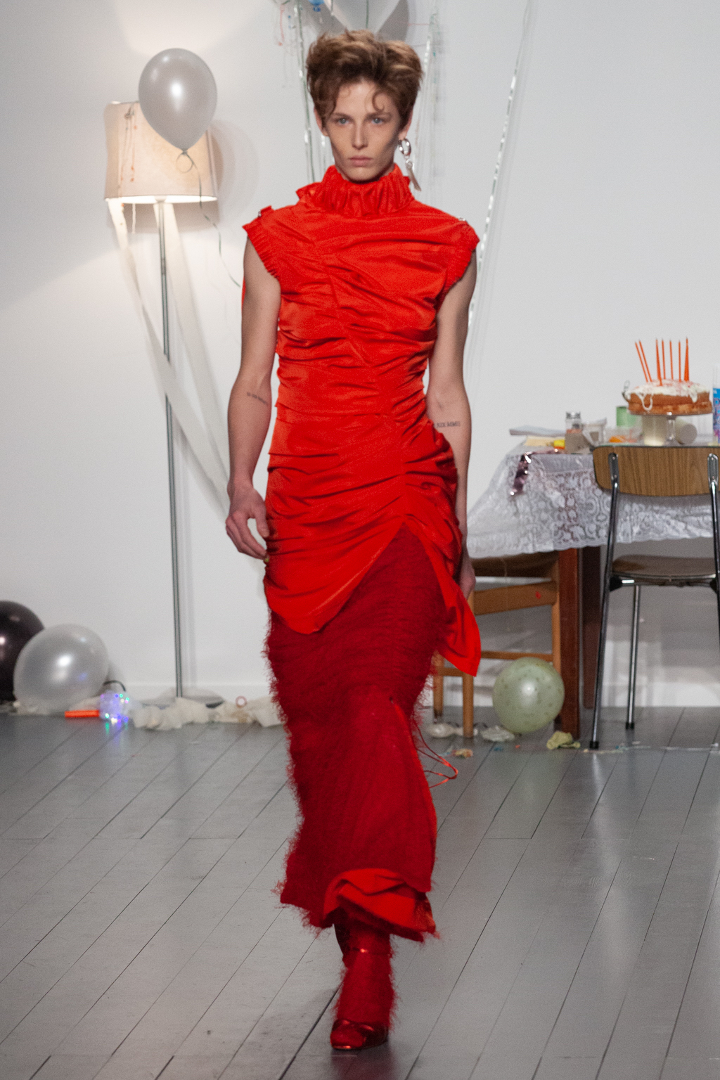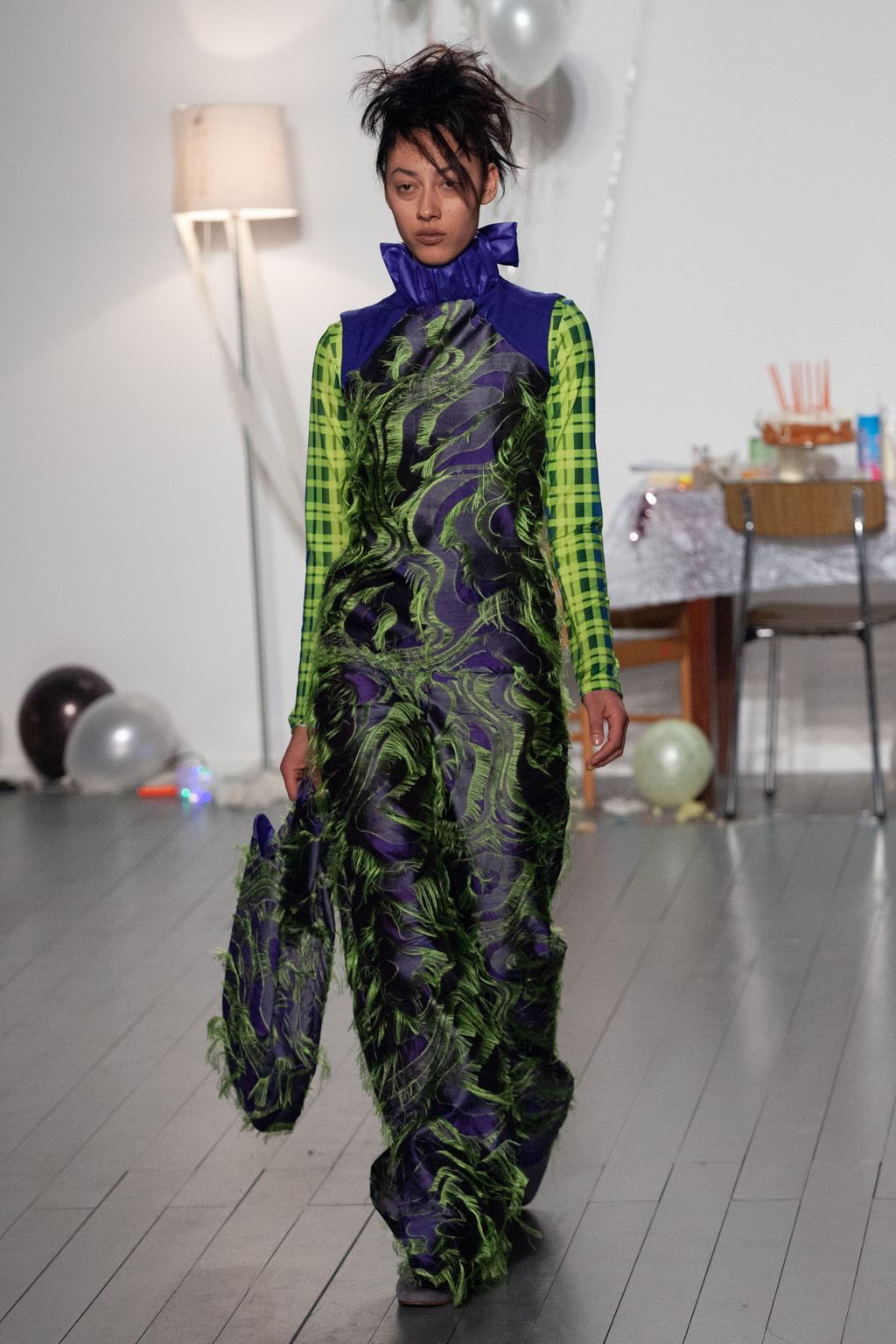 A family birthday party set the scene for Richard Malone’s autumn/winter 2019 show, which exhibited a dressing up wardrobe intended to span generations.