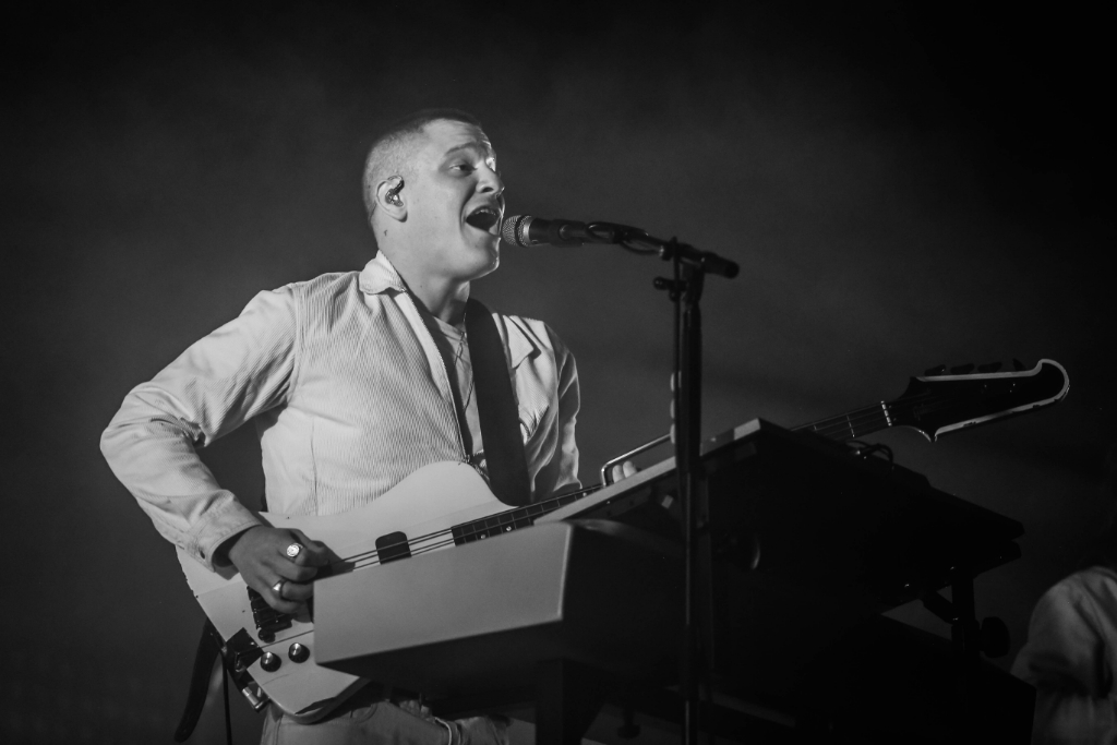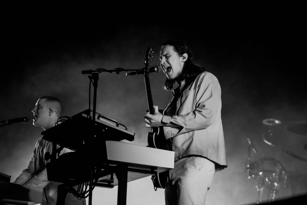 Beat 54 (All Good Now) is a favourite. The 70s-disco grooves of the record are aided by the grand entrance of a disco ball. People cry in excitement for this ancient concert relic. Andro and Rudi Salmon, the backing singers flanking the frontmen, infectiously sway their shoulders and the crowd imitates them – at least those who aren’t occupied with a loved one riding their shoulders.