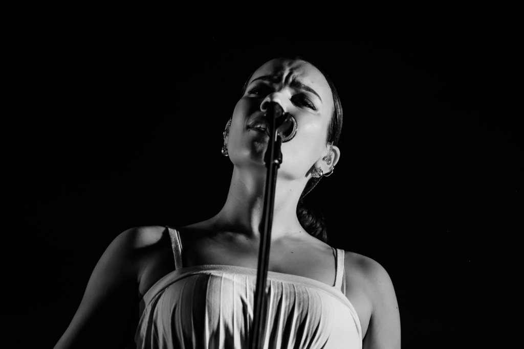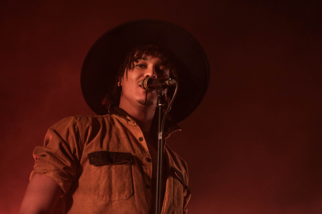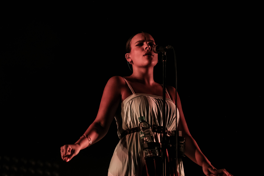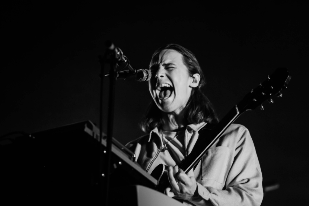 Mid-year releases with an immeasurably upbeat energy contribute to this seasonal affiliation, and the sunny vibes are proliferated this evening with a bright and balmy lighting scheme across the red and yellow spectrum. Founders Tom McFarland and Josh-Lloyd Watson ensure that their collective’s rich aesthetics are transferred to live performance with a seven-piece band. Limiting their attire to camel and beige boiler suits, they nicely blend with the vibrant colours.