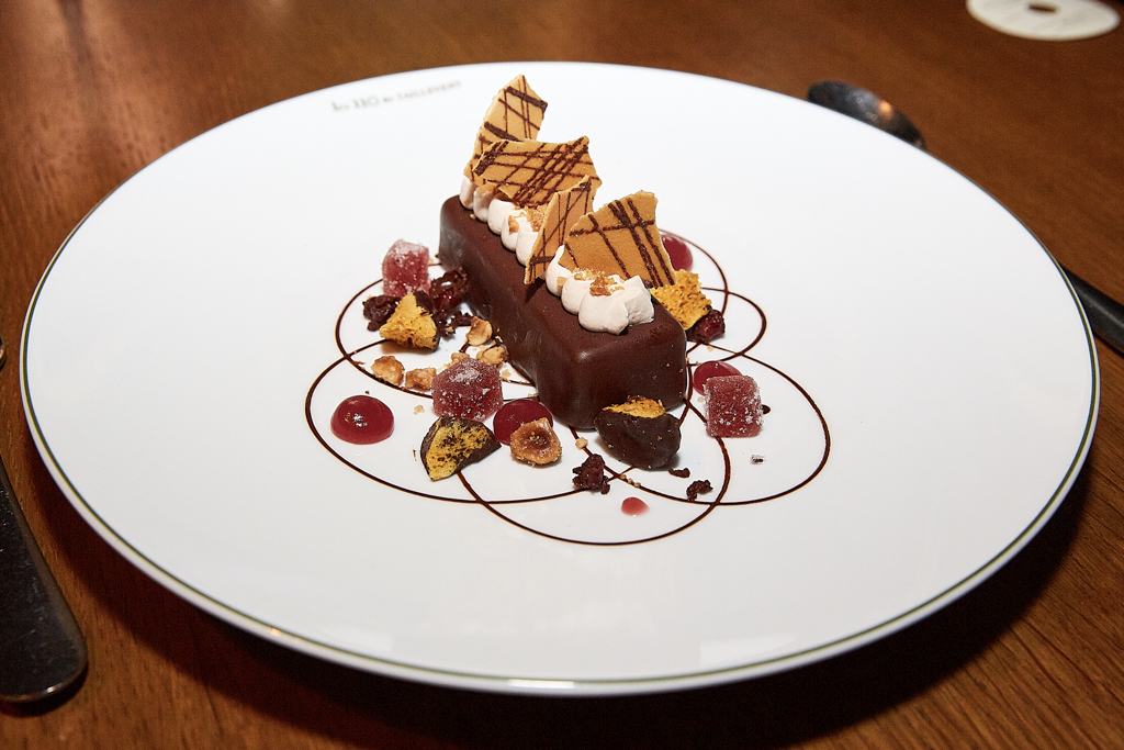 For dessert, we had the Chocolate Hazelnut Crémeux with pomegranate and honeycomb. A special treat for chocolate lovers, this one was all about textures: smooth, velvety chocolate combined with crunchy honeycomb and silken pomegranate. This was paired with a glass of the Salvat Rivesaltes Ambre.