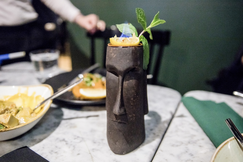The drink menu offers a fair selection of wine, but it’s in the cocktail list that creativity thrives. Playing with colours and the exotic flavours coming from the Far East, the concoctions are carefully prepared to impress the eyes as well as the taste buds. We started with a Titas Margarita, a fruitier take on the classic margarita, with Passoã and purée of passion fruit – half of which is left floating in the glass. More classic is the Old Fashioned Papa, rum and orange bitters on the rocks. What really leaves this reviewer excited, though, is the presentation for the Moloy Dai Tay. This sweet-sour drink is made of Disaronno amaretto, Grand Marnier and pineapple juice, with a teaspoon of Don Papa rum, served in a Tiki mug. After being set alight, the half lemon on top is turned to pour in the rum.