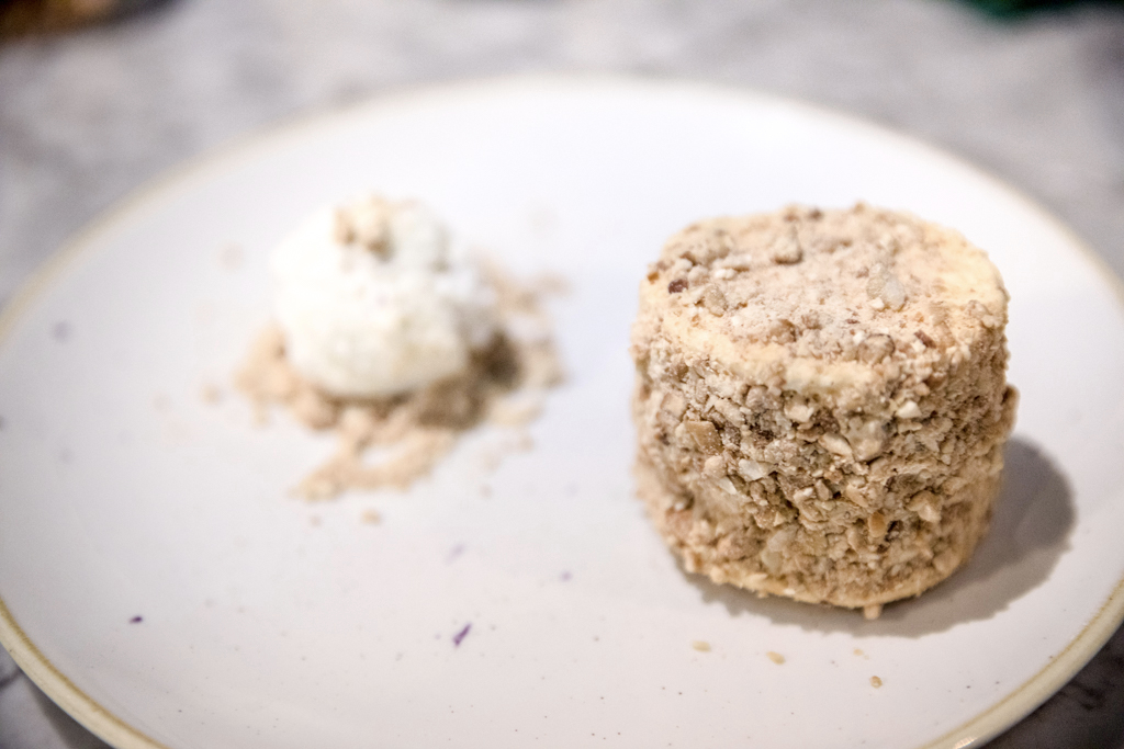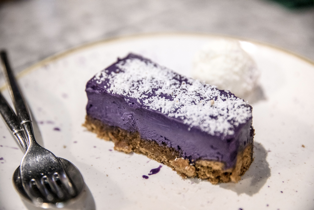 The surprises don’t end here, as the first of our desserts to arrive is a shade of intense purple. The Ube Cheesecake is made out of yam, a vegetable similar to sweet potato, but starchier and a bit less sweet. The purple variety not only offers an original presentation – and initial bewilderment – but also a particularly fresh flavour, which is not excessively sugary.