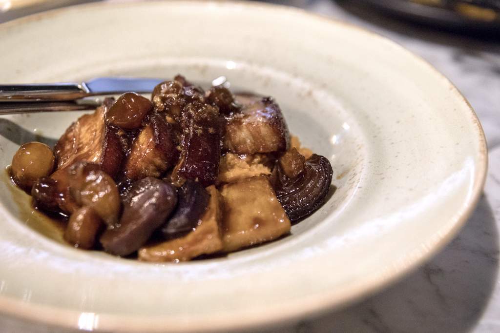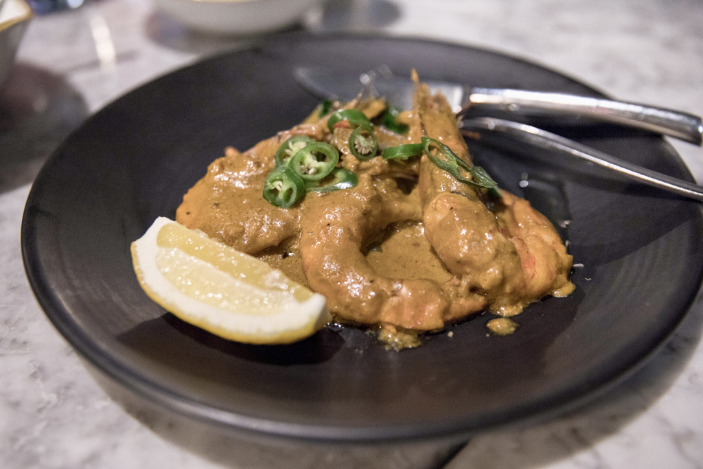 Ginger is an ever-present ingredient, as proven through the subsequent mains, which are accompanied by some light and balanced ginger rice. Although the shellfish prove very succulent, the Coconut Chilli King Prawns are a bit doughy overall, probably due to the olive oil and coconut milk. Hitting the mark instead is the Dingley Dell Pork Belly Adobo. Diners are to be warned: this is a pretty fatty dish, but the cooking in soy, garlic and rice vinegar makes the meat extremely palatable. And it would be impossible to forget the trio of potatoes as a side, offering a very interesting combination.