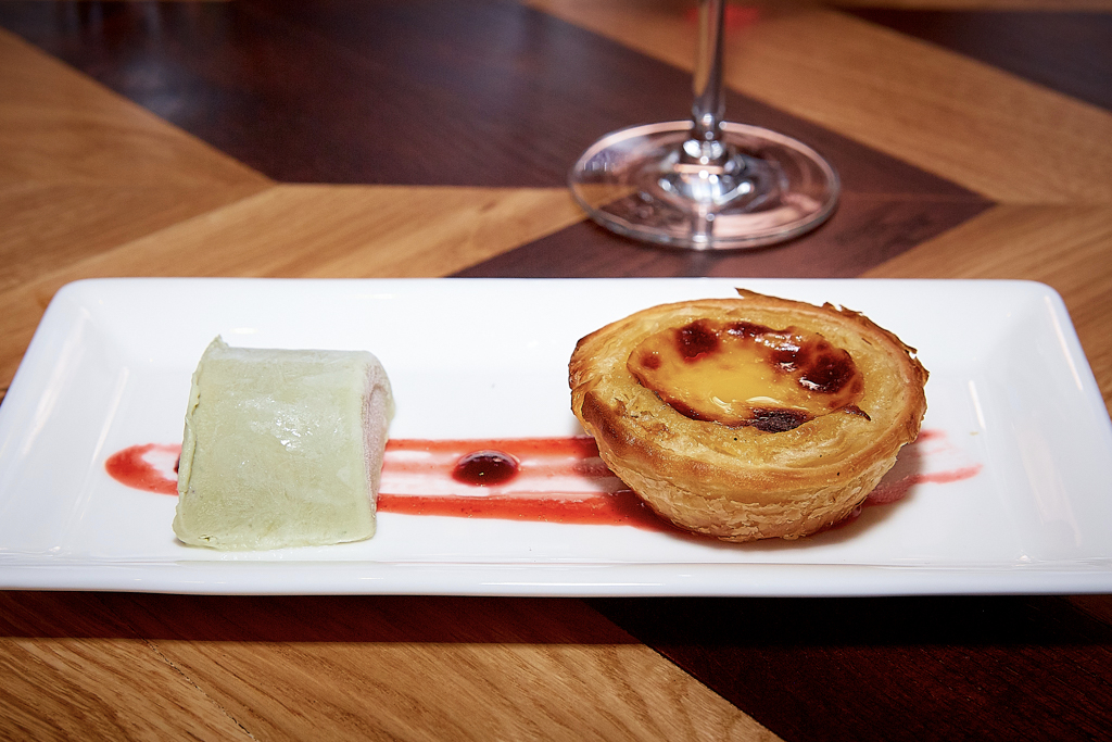 The second course, a glorious meaty trio, helped to highlight an important characteristic of Mr Todiwala’s kitchen. A champion of sustainability, the chef personally takes care to use ingredients coming from socially conscious suppliers. The meat is sourced from British farmers and the fish from local communities. The restaurant supports organic products with no use of colouring. An example of this was the Chicken Tikka, lacking that bright red appearance we may be accustomed to, but naturally well-flavoured. This was served with a lean turkey kibbeh on tomato sauce and a freshly marinated chutney duck. The intense Vilcún Merlot we had happily married this course.