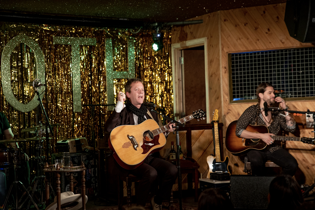The Canadian film star walks on stage under Moth Club’s glittering ceiling to raucous applause; it is surreal, to say the least. Setting off with the lilting Calling Out Your Name the actor’s signature smoky vocals are a perfect match. Explaining to his crowd how he wanted to play to “really small audiences and break the songs down”, he is joined by his guitarist, performing the opening track off latest album Reckless & Me, released later this month. Multi-instrumentalist Phil Parlapiano also accompanies with piano, accordion, organ and mandolin. Sutherland humbly reflects upon the Outlaw country musicians who were rejected from Nashville’s music establishment, such as Johnny Cash and Kris Kristofferson, dedicating Shirley Jean to the former, inspiration evident in the lamenting melody. The Canadian is a natural performer, making fans laugh with warm self-deprecating anecdotes on his personal life. Can’t Stay Away takes a lively turn, the first highlight of the show, and also his first love song about a bar. Despite his fame, the actor is a humble and gracious performer, thanking fans continually.