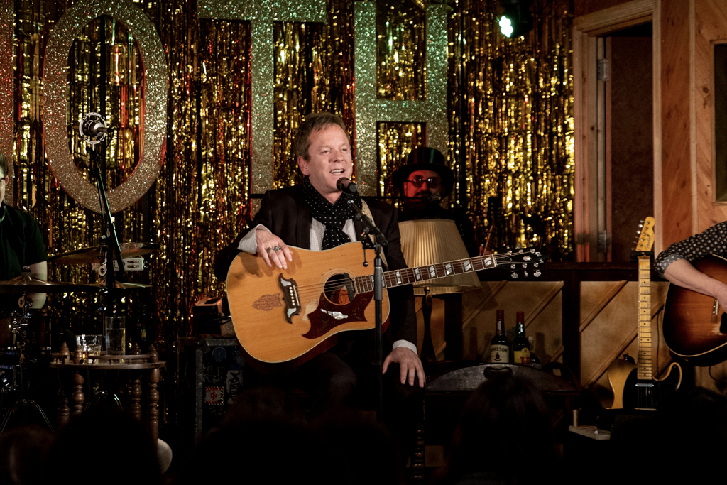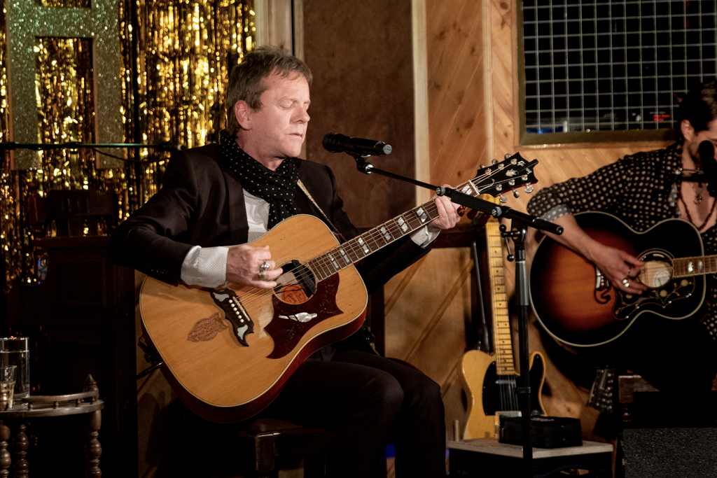 Inspired by a famous scene from Bridget Jones’s Diary, Sutherland gives us another great track, I’ll Do Anything, sweet and wistful, followed by a dedication to the veterans of Canada, the vocalist managing to dance in the intimate space. The energetic This Is How It’s Done resembles Elvis Presley’s Hound Dog in its verve and rhythmic melody, while performing Agave for his tequila-drinking Californian friends, he becomes boisterously spirited, fanning the guitarist with his hat. In a short Q&A session the actor is invited to a fan’s wedding and relates funny lyrics he wrote at 14. The musician then plays a worthy rendition of Bob Dylan’s Knockin’ on Heaven’s Door, reminiscing being in his father’s car with the legendary songwriter’s album on repeat.