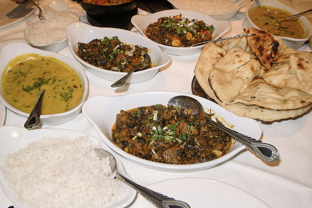 Grinning and toting new boxes of chai, we stumbled across the road into a local balti house. As we waited for the first dish, Raj produced a spice container (not his mother’s, but similar), and we played a guessing-game as he ground up each one and proffered them for our noses. By this point, we were all good friends, and many memories and stories wafted out with the aromas. We were served spiced chickpeas wrapped in fried bread, beside a tart tamarind chutney, and it was truly glorious: rich, decadent, zingy. I was envious of other, fuller plates. Raj’s choice offering of Saag Lamb, Tarka Daal and naans followed shortly after. The former dish was seducing, its hypnotic fennel aroma the star of the evening. The chickpea daal was unashamedly garlicky, and light as a feather. We ploughed into the spread but slammed on the brakes when Raj reminded us we had other meals in store. It was solid advice, but to this day I’m still haunted by the two morsels of lamb we left behind.