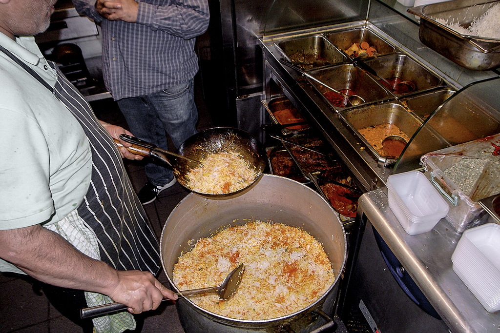 We stopped first outside a restaurant so humble in appearance that at first we thought our guide was pausing to rest his legs. Surely this tiny, fluorescent-lit café couldn’t be the first stop on our authentic food tour? It was. The café grill opens up into a deep, cool, tiled restaurant. We chugged sensational mango lassis (yoghurt-like blended drinks) and sample a hot crispy-fried piazu (like a pakora) with bracing raw onion and lemon to balance. We were off to a strong start. As we left, the beaming proprietors wanted to answer questions about their dishes. They willed us to return.