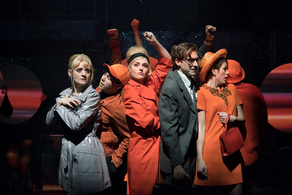 Rouke’s production is teeming with fresh ideas; it’s not stifled by the success of the original stage musical. She gives the show a strong and unique visual style. There are lots of “shiny, shiny, shiny boots of leather” and Robert Jones’s silvery set design undoubtably takes inspiration from Andy Warhol’s Factory. The audience is treated to a nightclub dance number by several Warhol lookalikes. Wayne McGregor’s choreography finds an alternative to Bob Fosse’s original dance style; this might annoy those who are ardent fans of the original, but it does bring fresh life to the musical.