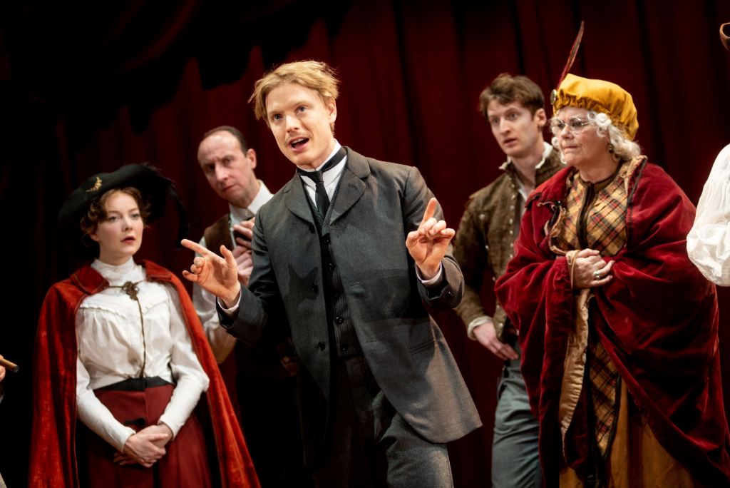 With a nose for a hit, Alexis Michalik is back with his second play opening in London this month (the first being the highly acclaimed Intra Muros, currently running at the Park Theatre). Slick, smooth and slapstick, Edmond de Bergerac is a structural piece, one of echoed parallelisms which sees Edmond’s life and career play themselves out in an almost simultaneous way, so as to liken Rostand’s own experiences with those of his beloved Cyrano. The mobile set – opulent in design, providing a dual operating function alongside the narrative as opposed to merely supplying its backdrop – is effectively comprised of two balconies and a fictional stage which ebb and flow harmoniously, taking on board, one could say, a supporting character role.