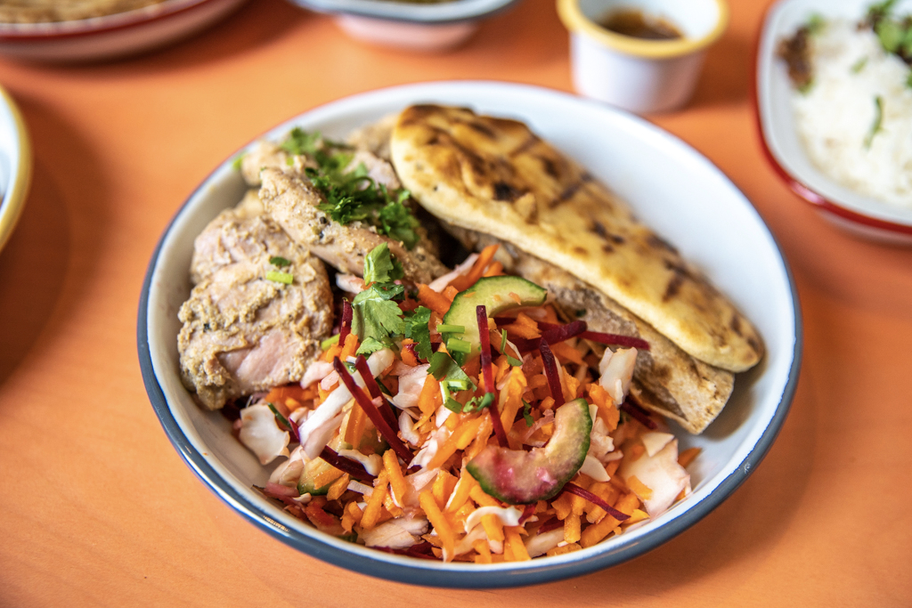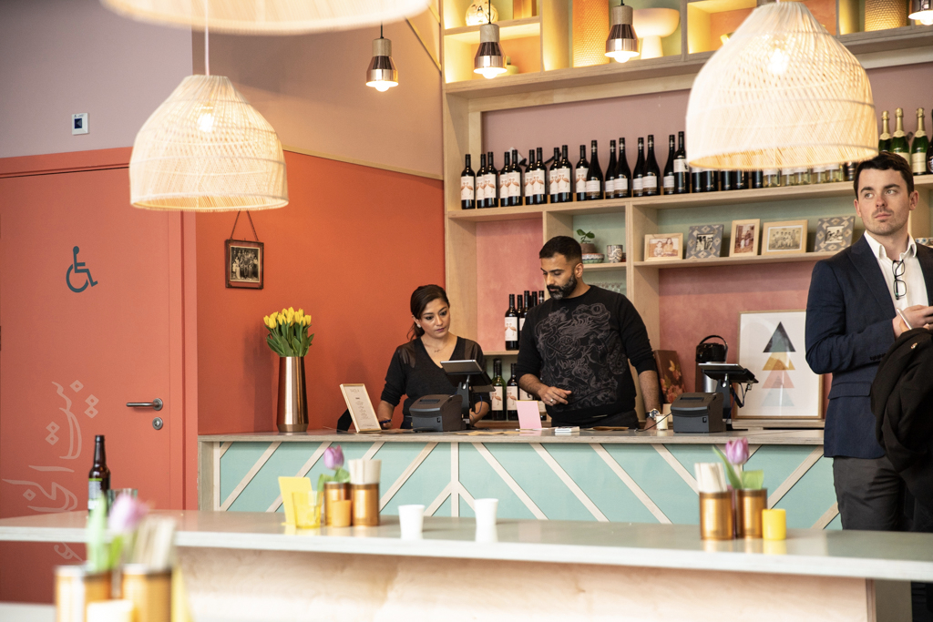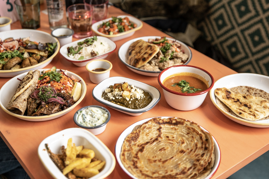 A fresh, contemporary vibe seeps through the decor. Pastel hues reminiscent of the Sindh coastlines pair up with subtle rattan lighting and there are small artistic nods to the founder’s Pakistani background that help create an airy, calming, modern dining room. The spaces are adaptable to all sorts of patrons: bar stools tucked under countertops allow for a quick bite, four-person booths nurture an element of intimacy whilst the casual, long sharing tables make for the perfect informal feast.