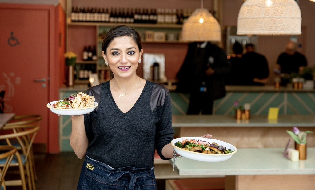 Blending traditional Pakistani recipes with a modern approach, chef Aida Khan brings her culinary heritage and zest for light and healthy dishes to her new restaurant in London’s White City. Shola, which is situated in an area buzzing with innovative business ventures, not only houses seating for diners but also offers take-out options for good food on the go.