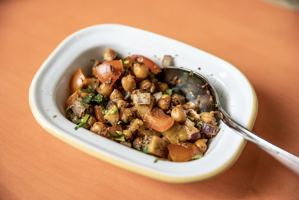 We try three vegetarian sides which work well in terms of sharing, a creamy spinach Palak Paneer sprinkled with delicious homemade crumbly cheese and dotted with fried paneer cubes on top and an Aaloo Chana Chatt, a dish of fresh, crunchy chickpeas blended with tiny pieces of potato, tomato and onion. The spicy Yellow Khatti Daal, consisting of slow-cooked yellow lentils, put some heat in the selection, showcasing lovely roasted cumin which also then added a fragrant depth to the trio.