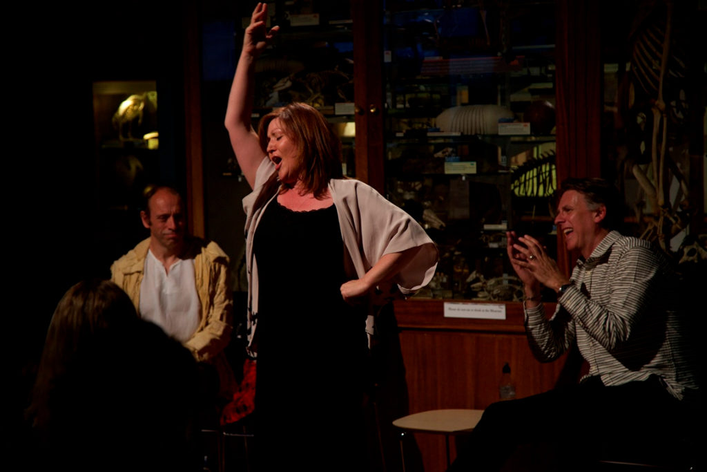 The operatic choir interject between each academic and makes an improvised, and often extremely comical, performance from each participant’s tale. Susan Bisatt, the soprano, seems seasoned in her art. She easily leads some of the stories, ad-libbing impressively in Latin and working well alongside her female mezzo soprano, the graceful Louise Crane. Movements are fluid, makeshift scenarios are played out, but it’s the humour and quick-thinking rhyming from baritone Niall Ashdown that really brings this unique format to life.