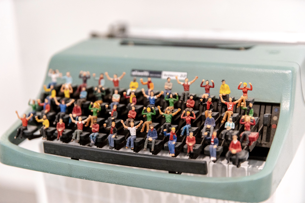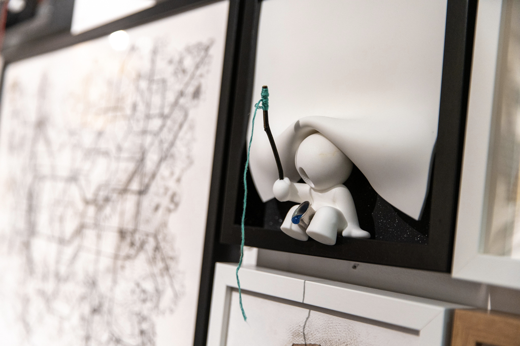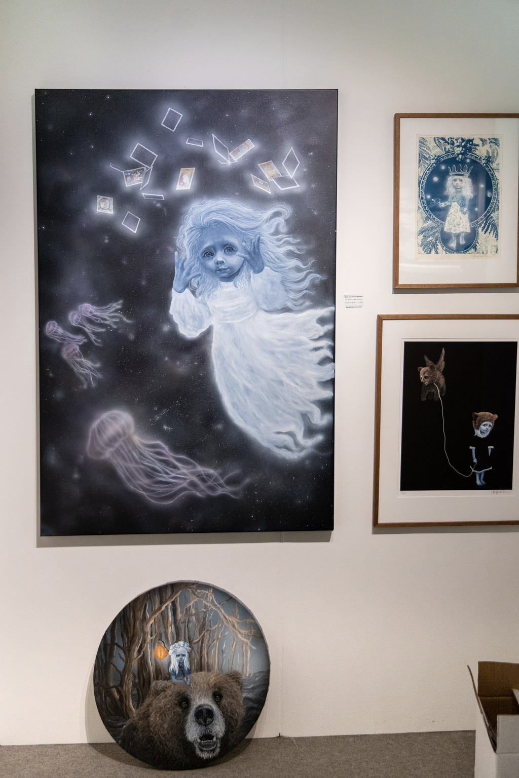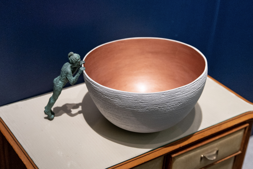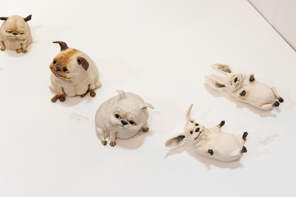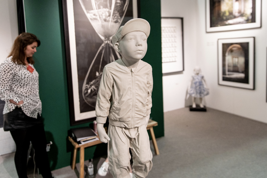 Statues inspired by the animal world abound. Smooth lines are a must, whether applied to ceramic dogs as proposed by ArtZandra, or to the plump penguins by Noor Brandt. Damilola Odusote processes his subjects and the frames into which they are inserted so as to render visual depth between 3D and ink prints. Pop culture and kitsch literally melt together in the resin ice creams by Betsy Enzensberger, while the feminine figures – such as Releasing by Jonathan Hateley – are tumbling though still very graceful.