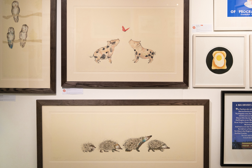 A particularly unexpected result is found in the splashes of colour by artist Ketna Patel, who works in the realm of Asian culture with a very humorous approach and a tendency towards maximalism. Selling Britain by the Pound is one of the most impressive prints, best summing up her expansive overturning of assumptions and exaggerations.