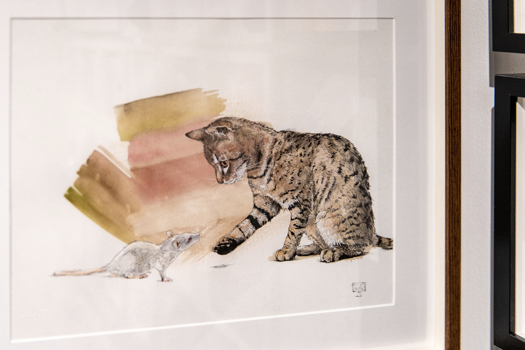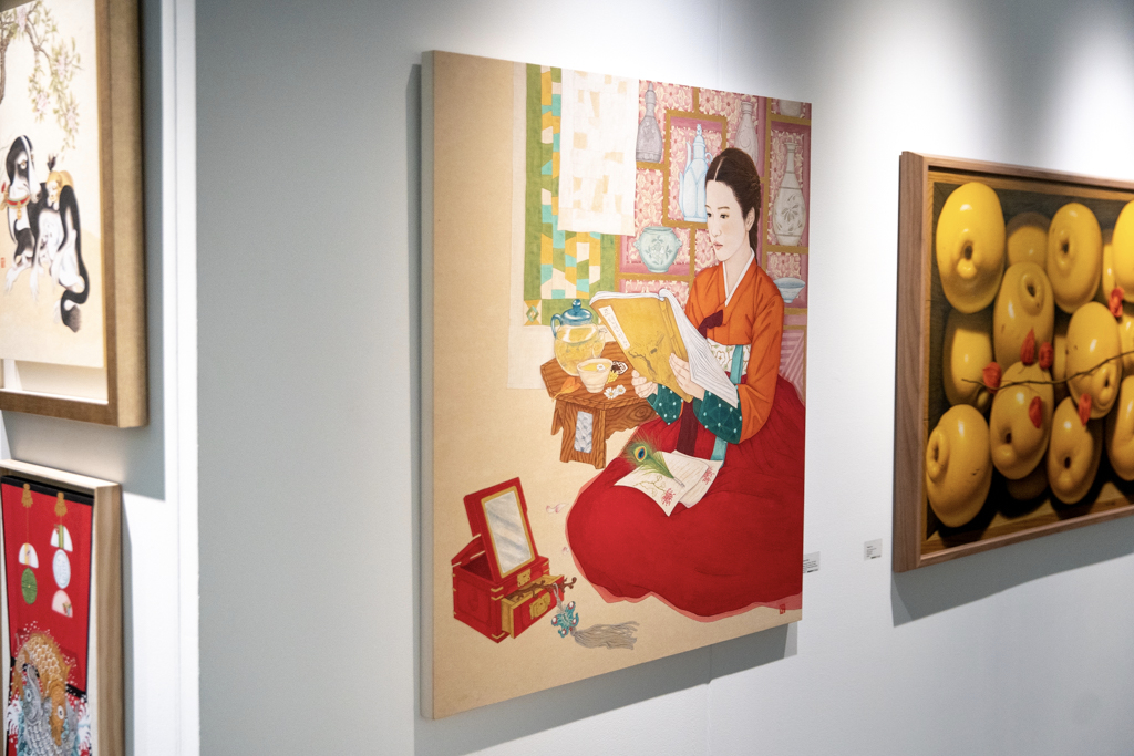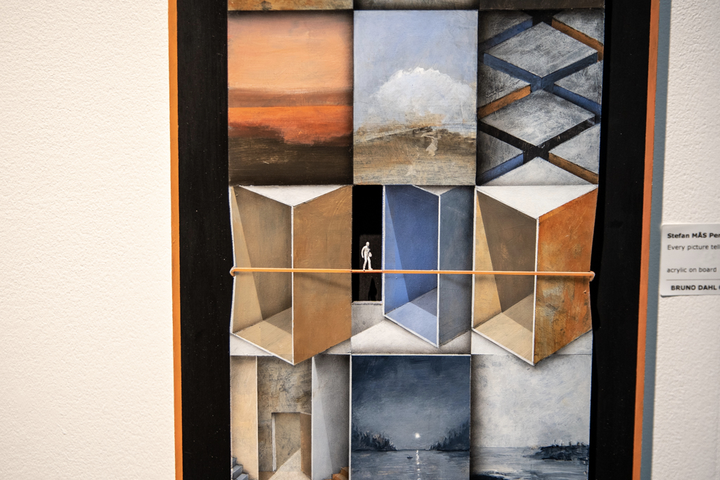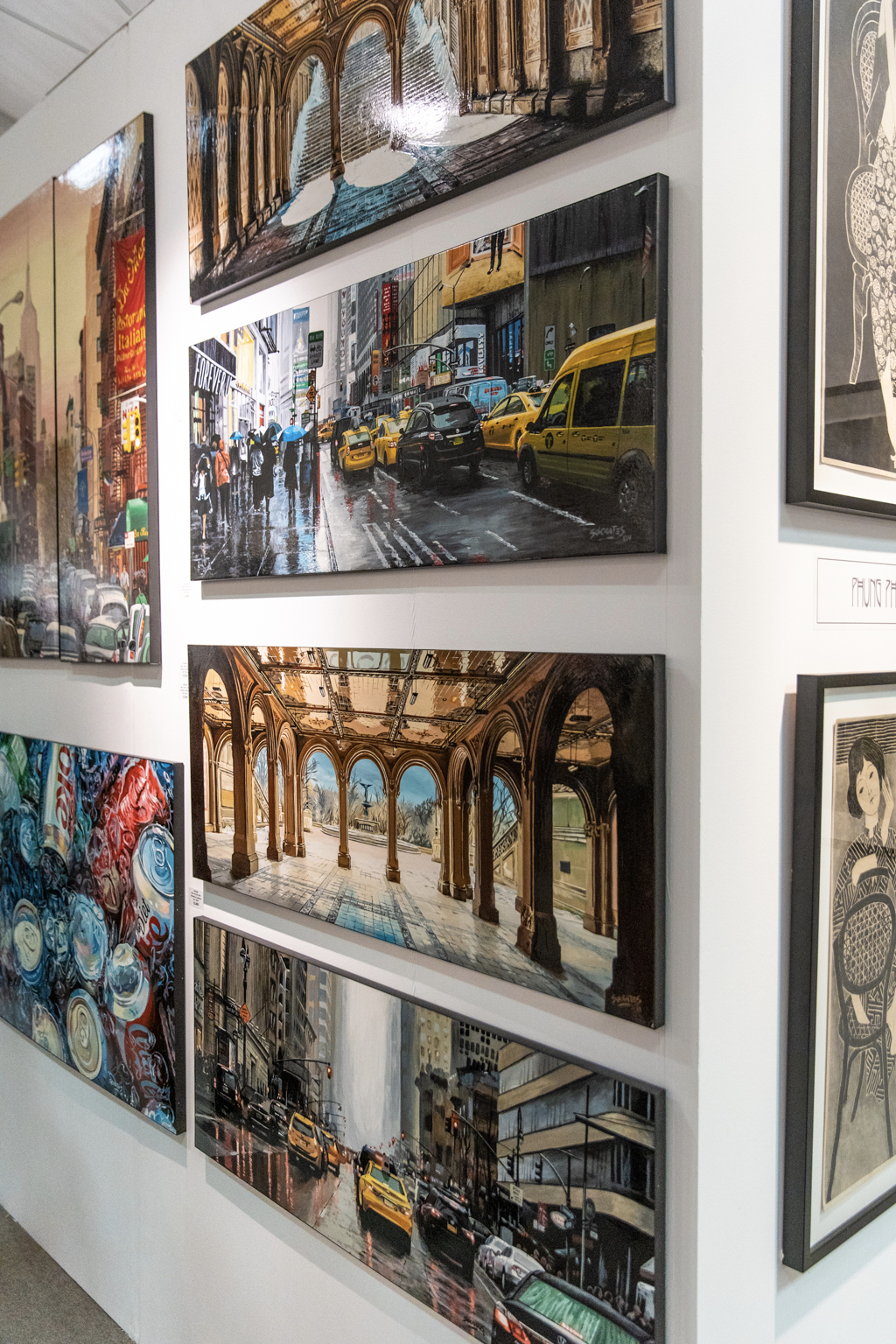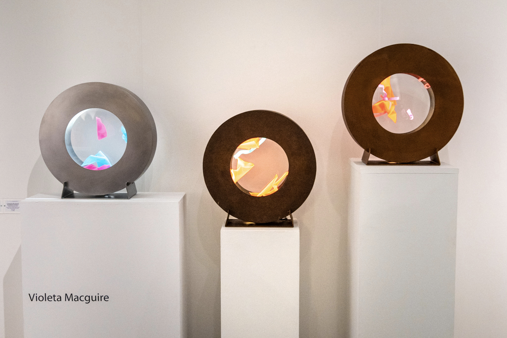 Quieter, but still featuring lively colours, is the series of nature-inspired works by Jen Shen, among which Meditation, in particular, draws attention for its bright oranges.