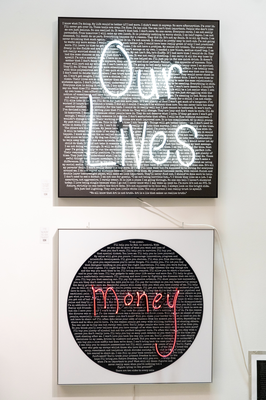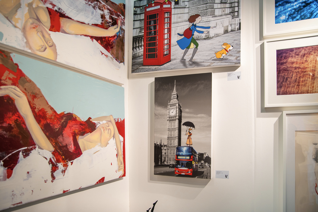 There is a strong desire to reconnect with the great artists of the past and clear traces of their influence are scattered around, not just in the reproductions of fashion and cinematic icons, but also in references to Picasso and to Banksy, as in Nayla Kai Saroufim’s Chasing the Rainbow.