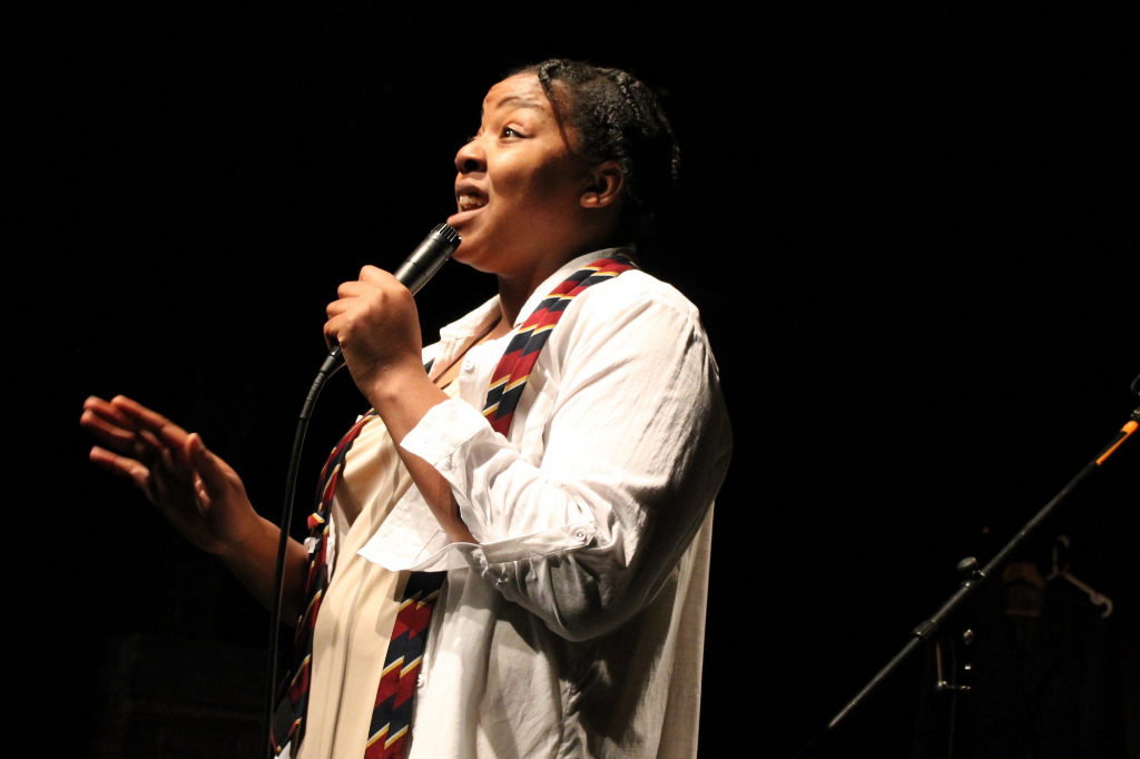 Yvette is a one-woman show written and performed by Urielle Klein-Mekongo, concerning the eponymous 13-year-old girl. Evie is trying to navigate her world of a strict and demanding mother, puberty and a harsh school environment of bullies, fickle friends and premature hyper-sexuality. The character starts with youthful exuberance, dancing in a traditional African style, proud of herself. Klein-Mekongo uses layers of her voice and body percussion on a loop to create an immersive sound.