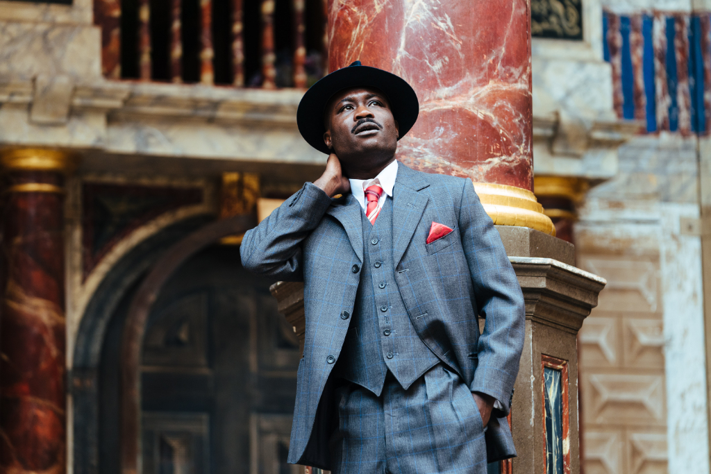 Director Elle While’s production is set in the 1930s. It’s a romping Jazz Age adaptation to which composer Frank Moon’s score does justice, blending in lyrics from early modern ballads with live music by a five-piece band. Choreography by Sasha Milavic Davies bustles with joy – and the actors’ jiving further energises a largely standing crowd, which shifts balance from foot to foot, dancing unconsciously along. The Globe’s stage here extends into the yard, allowing the actors to interact in new ways with spectators. This also ensures tomorrow’s performance will be different from tonight’s, and overmorrow’s.