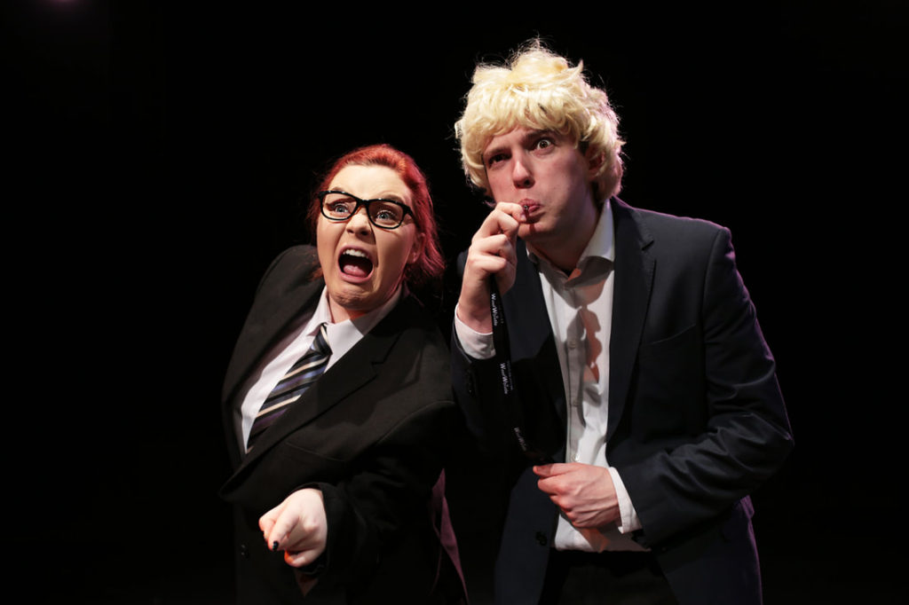Holding the shameless schemer together is a creepily bespectacled Govey – aka Michael Gove. The skilful way Polly Bycroft-Brown delivers this badger-culling conspirator and spreads the good news in We Beleave is simply marvellous. East 15 graduate Natasha Lanceley is absolutely fantastic as posh former PM Dave Cameron and current wannabe Jacob Rees Mogg, wearing fishnets and top hat for the hilarious Hard Brexit.