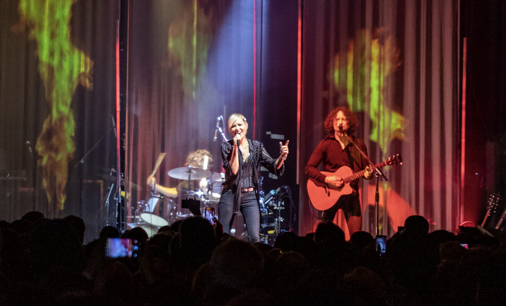 Hurricanes sees the five-piece band perform a dramatic introduction, before the artist makes her appearance, her vocals virtually the same as they were more than a decade ago, distinct and beautifully husky. Fire imagery is projected on drapes, while percussion keeps the beat, including gorgeous hand drums for Hell After This. As the performer greets the capital she adds how “it feels surreal”.