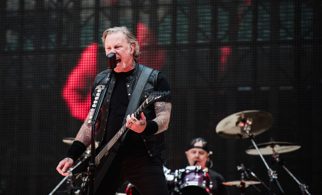 “What kind of music are you guys listening to now?” asks Metallica frontman James Hetfield. “It doesn’t matter,” he continues, “as long as it’s in your head, in your ears and in your heart, ‘cos music moves you!” After 38 years the Californian heavy metal band still manages to move a huge fanbase at the spectacular Twickenham Stadium. The elephantine “Metallica family” were immediately upon familiar grounds as the group began, as they always begin, with Ennio Morricone’s The Ecstasy of Gold from their album S&M (1999), as featured in The Good, the Bad and the Ugly, while the screen showed clips of the film.