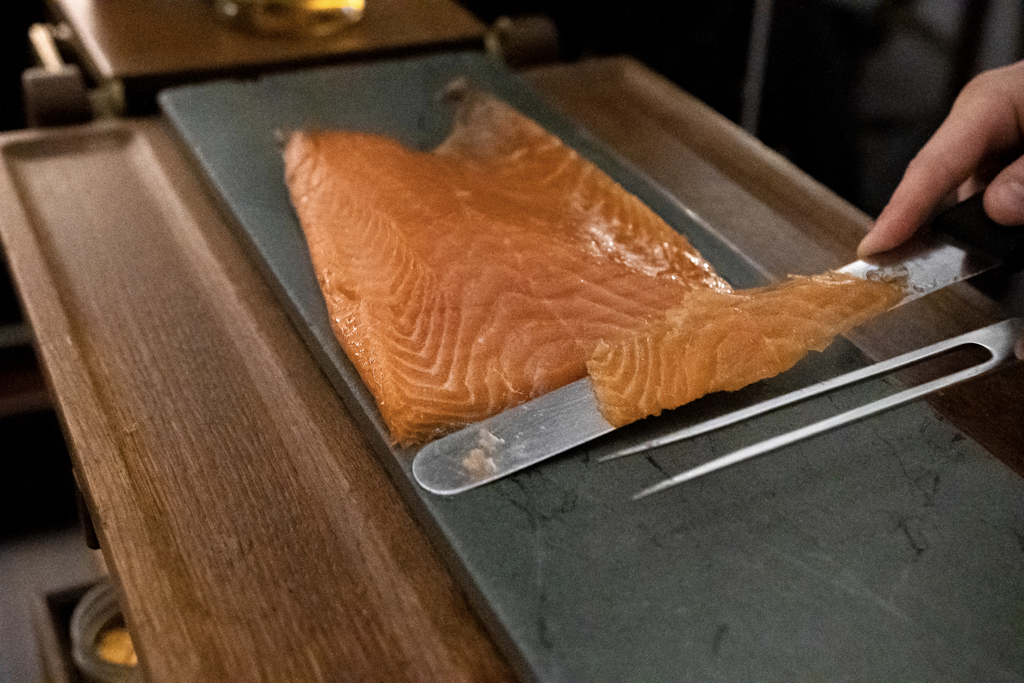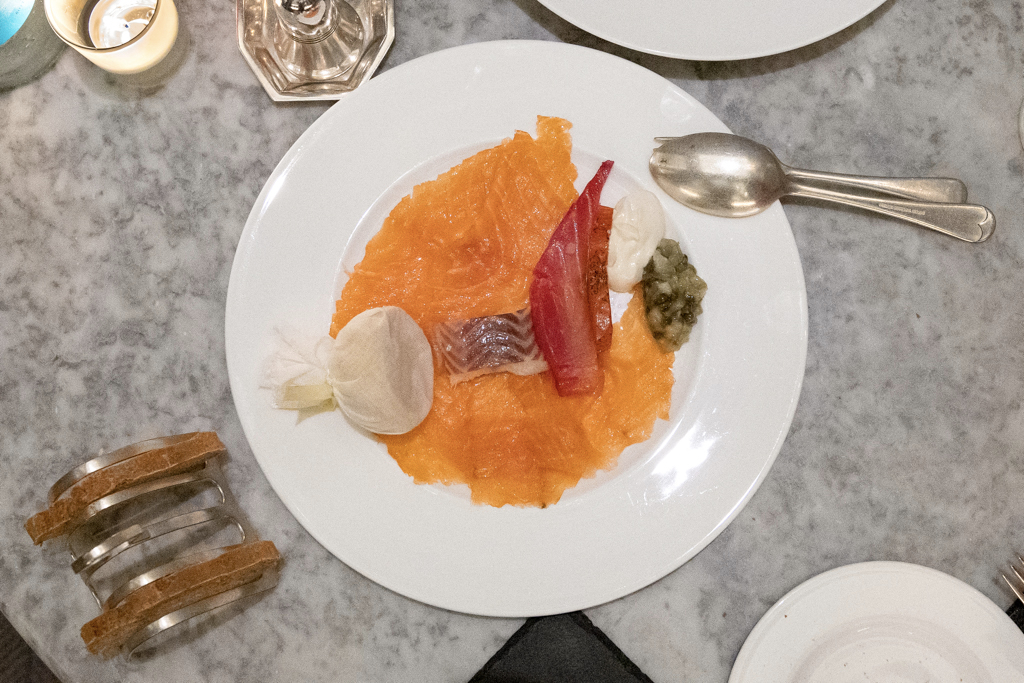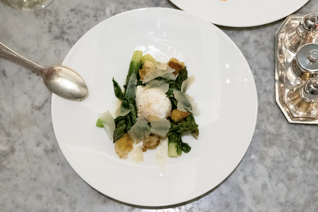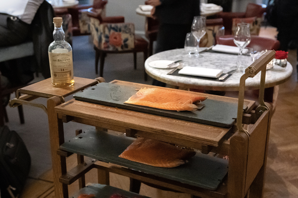 For starters, we got a delicious selection of smoked salmon and eel, all sourced within the UK, smoked and finished differently: from beetroot juice to lemon to a very interesting version with sprayed whisky. We got told that this practice is used in order to enhance the flavour of the savoury salmon, which it indeed accomplished. As an effortless side for the smokey protagonist, we sampled the Wye Valley asparagus. Fresh and tender, it was served with shaved parmesan, brown butter and a perfectly poached egg.