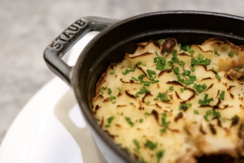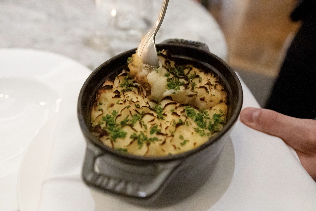 Speaking of more comfort dishes, we picked the cottage pie as a second main. Predictable, homey and delicious, with tasty meat and a juicy centre. It’s nothing you haven’t tried before, but a welcome option in a fine-dining restaurant that mixes traditional British cuisine with European-inspired plates.