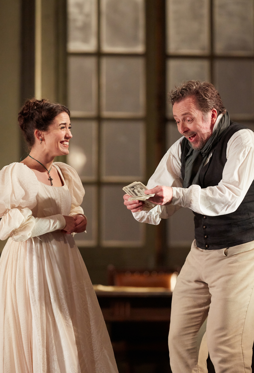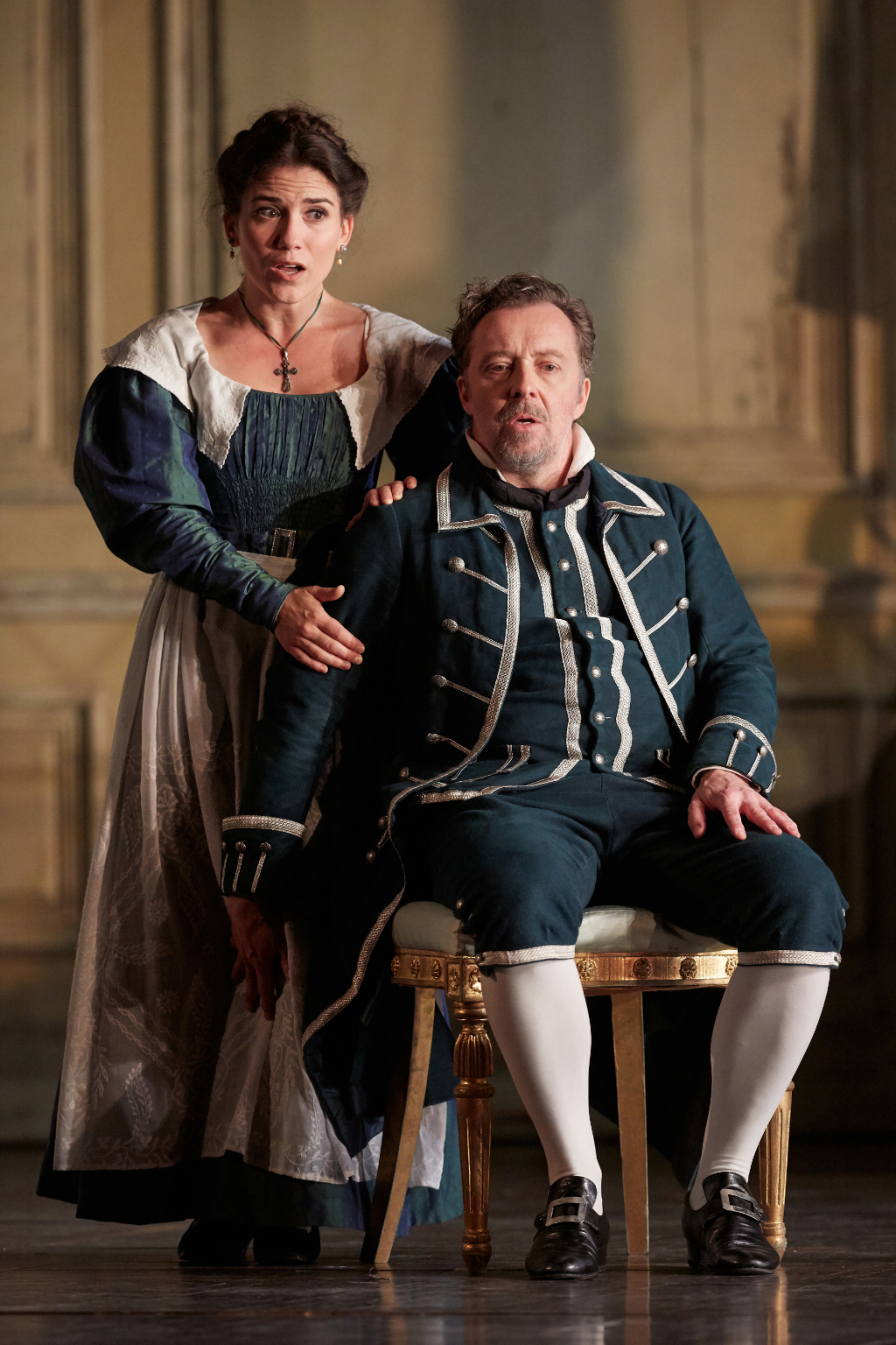 Tanya McCallin’s set design and Paule Constable’s lighting are the icing on the cake. The action begins in a beautifully illuminated space recreating a sunlit room of the palace that becomes majestic in appearance simply due to the flooding radiant light rather than any opulent decorations. Figaro and Susanna’s room is dark and gloomy but equally atmospheric and somewhat reminiscent of a sombre Vermeer.