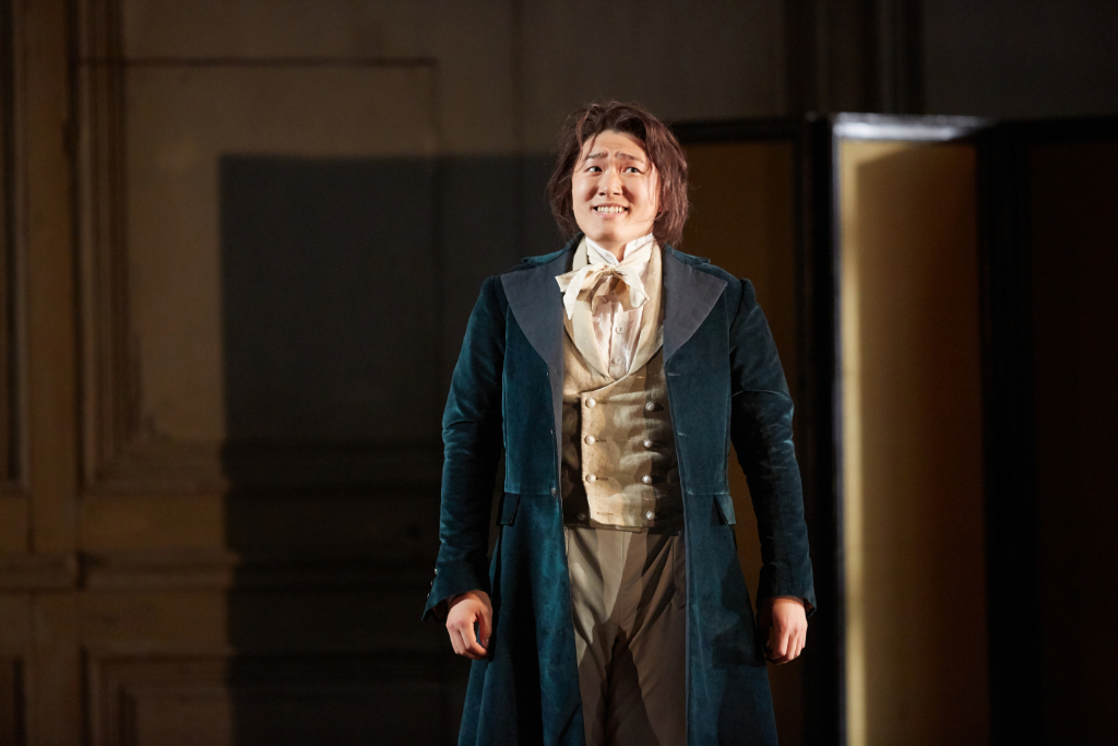 Christian Gerhaher brings verve and warmth to the role of Figaro, while Joélle Harvey’s Susanna is full of strength and dignity. Simon Keenlyside, who plays the Count, captures the nuances of the character’s duality as he moves back and forth from deceiver to deceived. Then there is countertenor Kangmin Justin Kim who makes history in the role of Cherubino, which is habitually assigned to a female soprano or mezzo-soprano. He nails the look of naïveté and the alternating tones of melancholy and youthful excitement that the role demands.