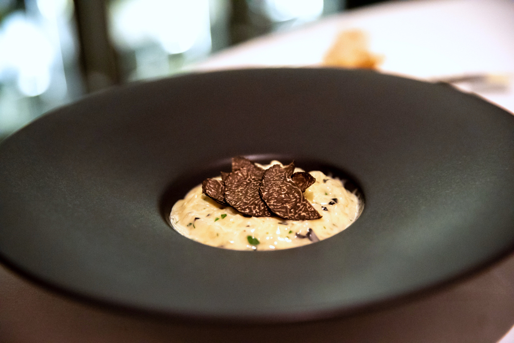 Because we are two and enjoy trying different things, we also pick the supplement from the vegetarian menu, a nicely cooked risotto with Australian black truffle. We continue with the pork jowl and the House Salad. Our final course before the cheese and desserts is a classic, the Herdwick Lamb; served medium-rare, we love how well it goes with the red berry aroma of its paired wine – Il Bruciato, the little brother of super Tuscan Guado al Tasso.