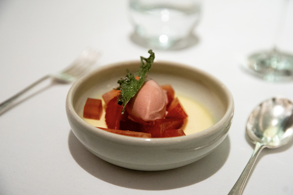 The first time I was at Alyn Williams was for my birthday in 2013. It was good, solid, refined. Fast-forward six years, everything is better, more solid, more refined. The dining room speaks of comfort and fine dining; the tables are spacious and the white tablecloth is grand, the napkins held inside gorgeous Murano glass rings. Trends are left at the door.