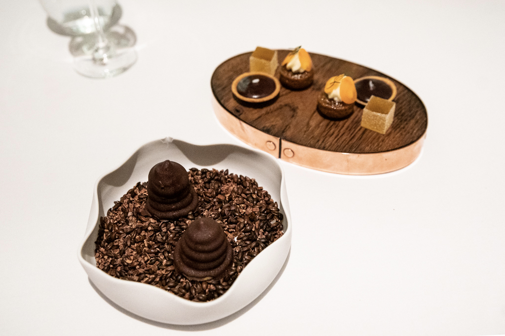 A palate cleanser of lemon sorbet, meringue and sorrel paves the way for the strawberry and clotted cream dessert. After a long meal, these two refreshing sweet dishes are very welcome. And if you are after chocolate you’ll just have to wait for the petit fours.
