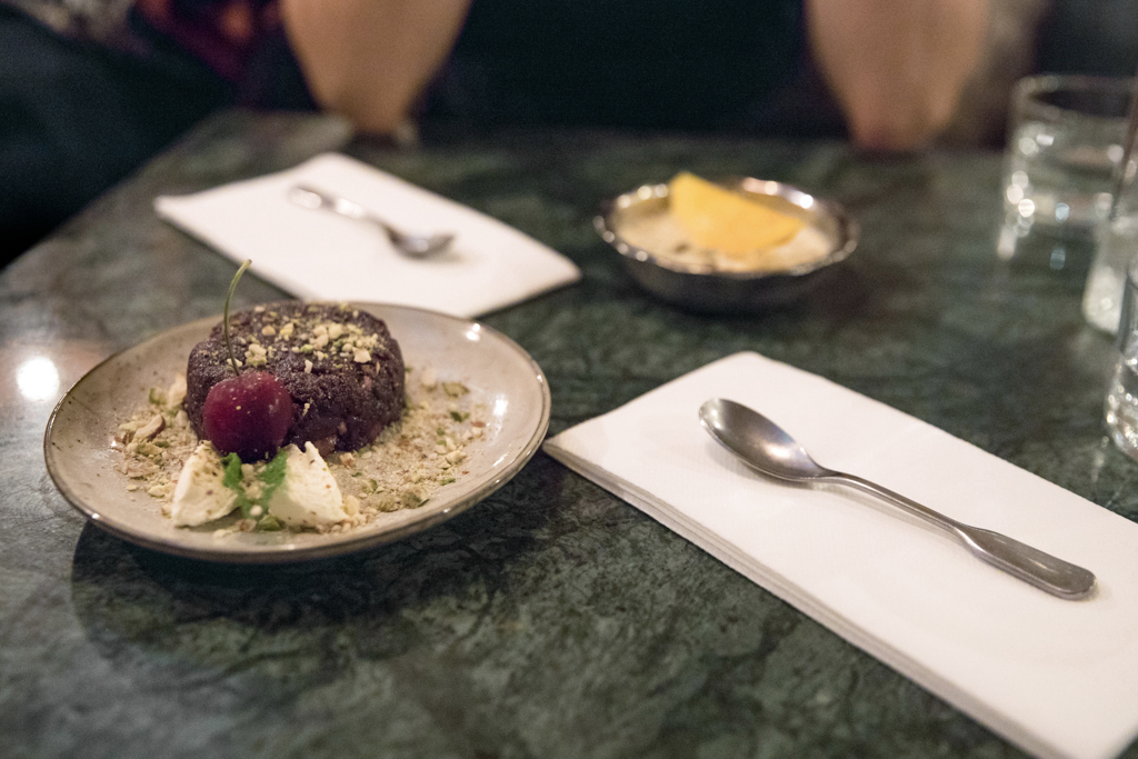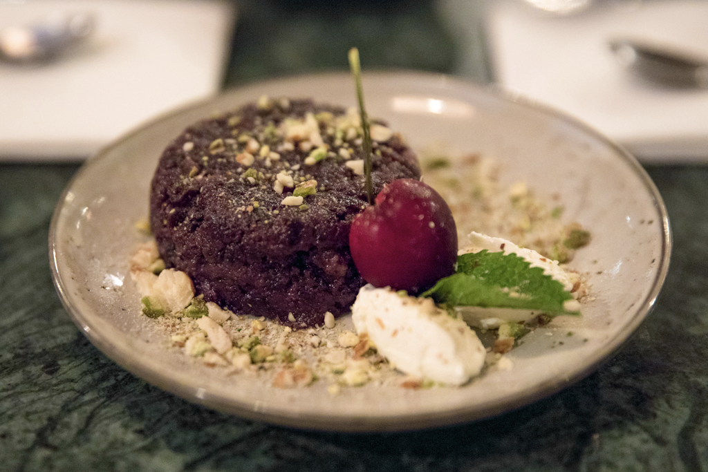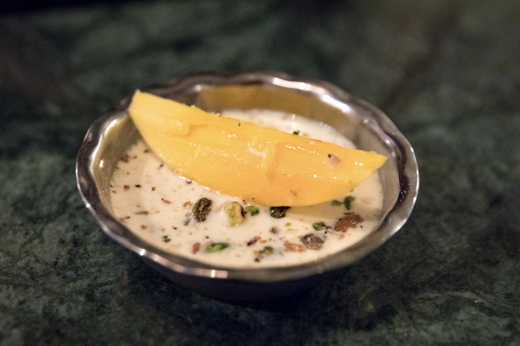 For once, it’s very easy to select our options from the dessert menu as we can just go for everything to share. That comprises two idiosyncratic servings of milk cakes, the Rasmalai, topped up with Alphonso mango (just a bit more sour than your usual one) and a beautifully crafted carrot cake, the Kali Gajjar Ka Halwa, with strong notes of cardamom and nuts and a very distinctive colour that will remind you of a chocolate cake (but much better!).