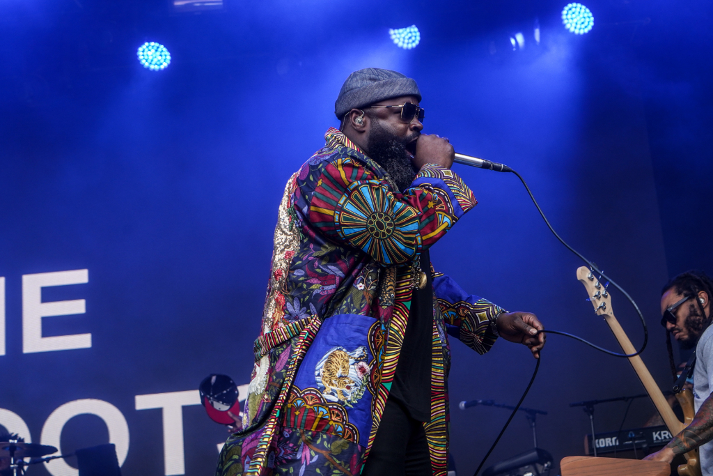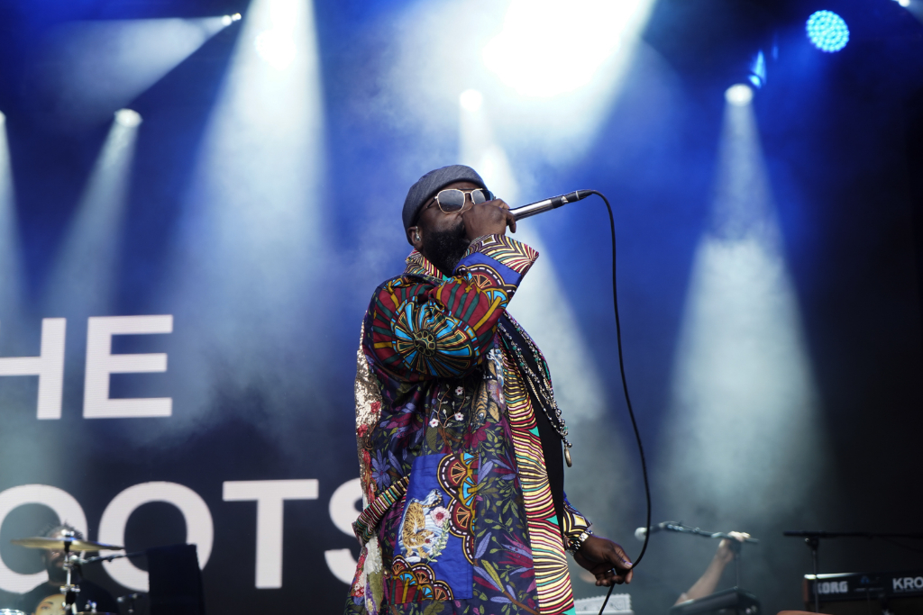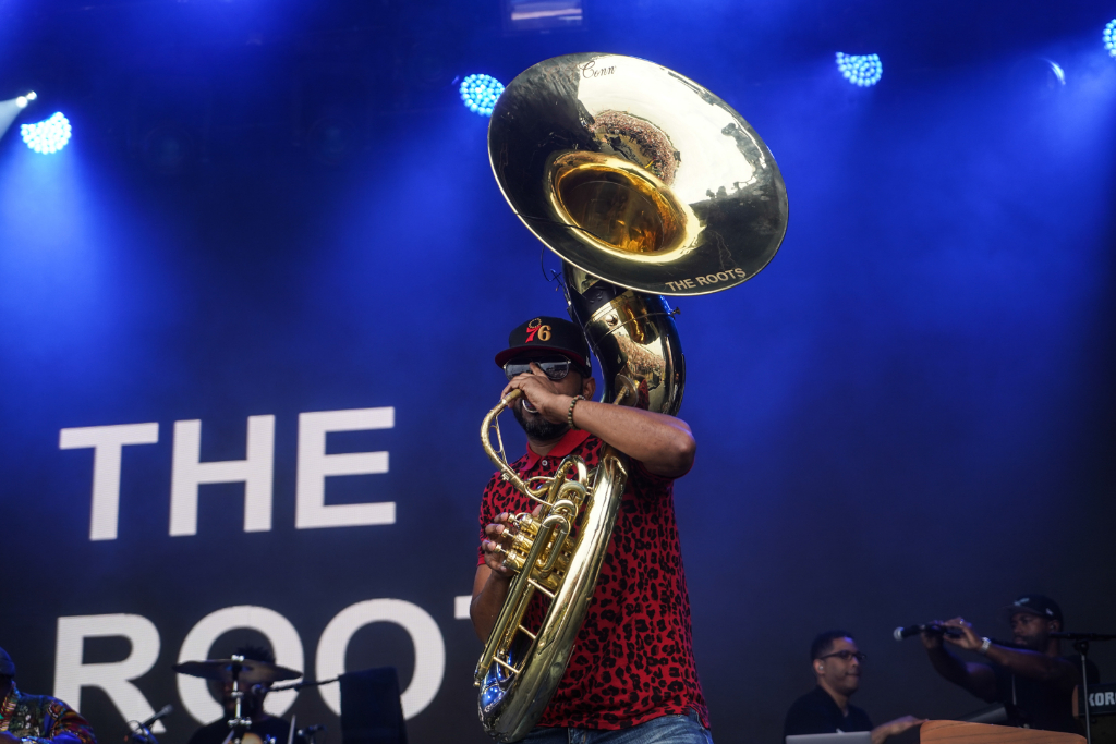 The Roots’ huge audience draw suggests they’re the main headliners. All eyes are on Black Thought, dressed in a regal Afro-patterned jacket emblazoned with his face. Unlike many rappers, he doesn’t skip a word or employ a backing track, effortlessly spitting the intricate lyrics of Web and Proceed. They’re the rare band who devote significant time to exhibiting each member’s dexterity, from Tuba Gooding Jr’s sousaphone ability to Captain Kirk Douglas’s guitar skills. The latter is literally spotlighted for a show-stopping medley of popular hip-hop songs.