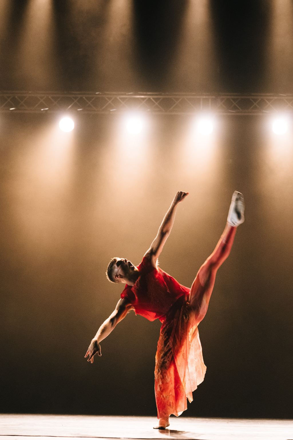Christopher Thomas’s To The Ocean Floor is an abstract representation of the state of a woman’s mind as she experiences abuse and grief. Through an effective piano score and a lighting design highlighting cold white and blue colours, the act creates an atmosphere in tune with the concept and the choreography, in which most of the dancers perform the emotions featured in the main “narrative” enacted by the lead performers. Sadly, these story segments are a little to concrete for an abstract representation, and thus feel forced in the otherwise enchanting production.