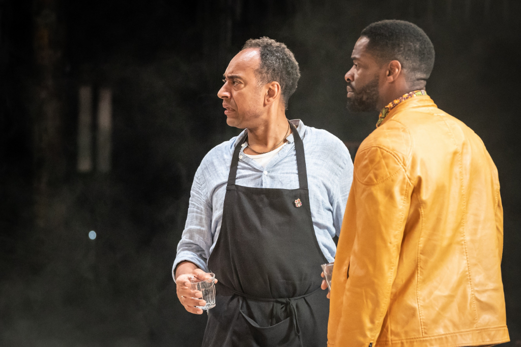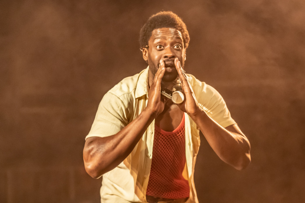 Party vibes are in full swing during the pre-show for Barber Shop Chronicles, now adapted for the all-around platform of the Roundhouse. As soon as the lights go down, the bright tone and the vibrant atmosphere justify such an introduction.