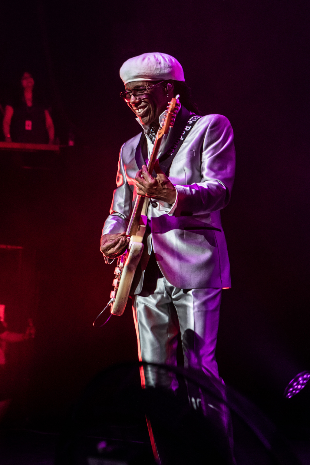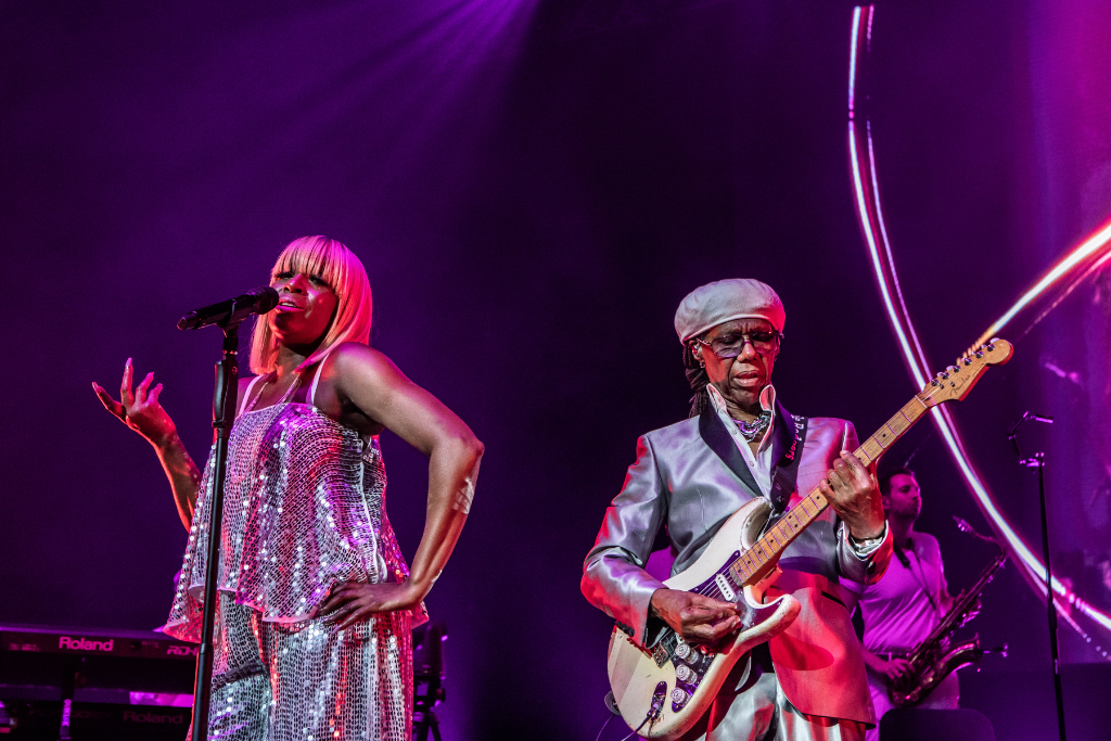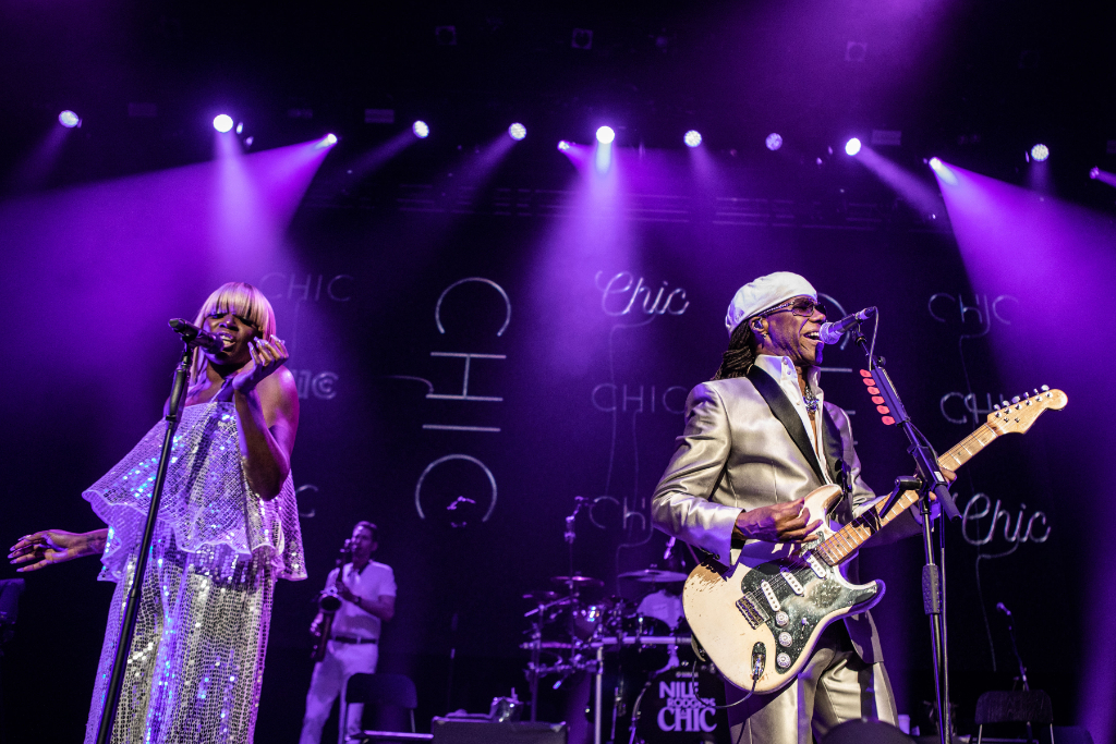 Few musicians have had such a Forrest Gump-esque involvement in the industry. As enlightening as it would be to continue listening to his anecdotes, it’s time for music. The band takes the stage in formal wear – Rodgers trades his patchwork jeans for a silver suit – and initiate a throwback evening with their first number one record, Dance Dance Dance.
