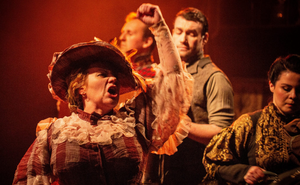 The play is based on the true story of Anna Edson Taylor, who in 1901 at 63 years old became the first person to survive a trip over Niagara Falls in a barrel of her own design. Through the palpitating physicality of the instruments’ swell, the production comes alive to envelop theatregoers in the immensity of the Falls and Anna’s ambition. The open-ended stage at Charing Cross Theatre elongates the actors’ movements in a way that allows them to reach out to the audience by melting together time and place. Their harmony of voices rise and fall with the characters’ hopes and fears and paint a picture of a time in history fraught with uncertainty. In particular, Trudi Camilleri shines as Anna with the resounding timbre of her voice.