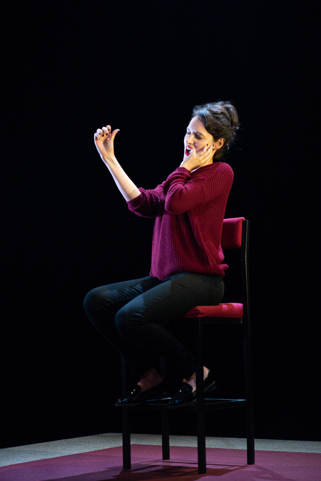 Visually, the play and the TV show are different beasts. The stage presents only a chair, some strip lighting and a single cast member – Waller-Bridge herself. The other characters are brought to life in two ways: recurring people are voiced by Waller-Bridge, while lesser figures come through as voiceovers.