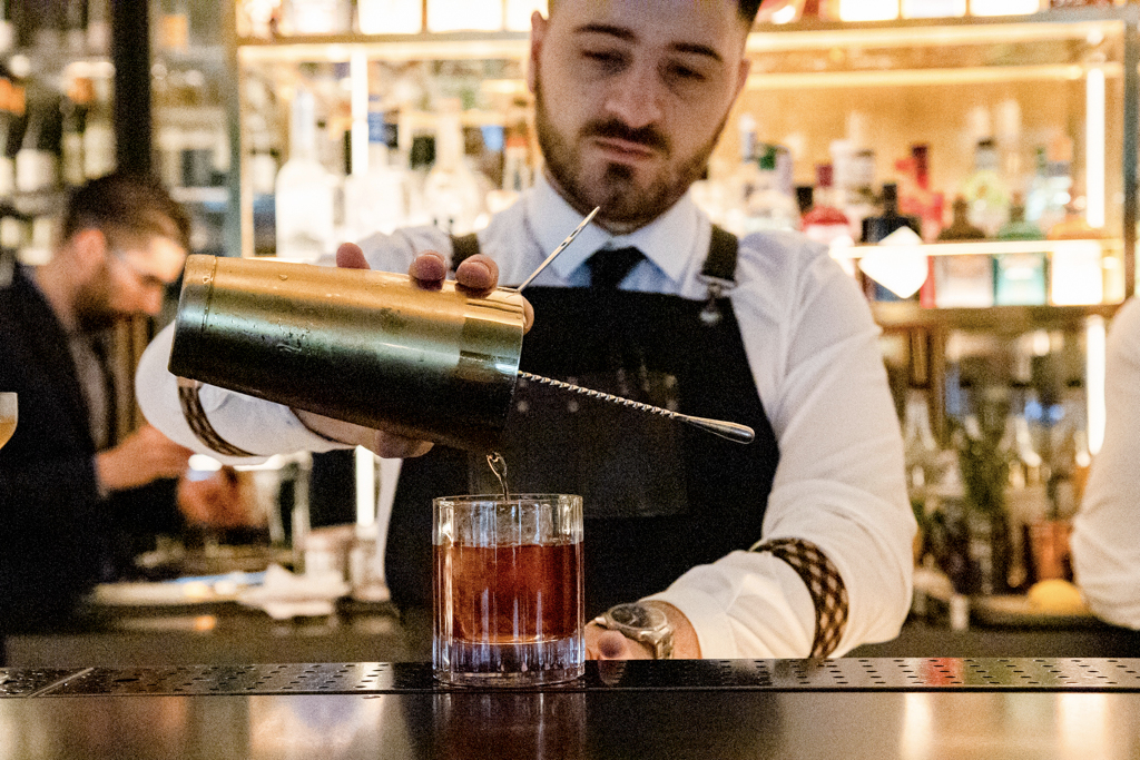 A new entry on the menu is the satisfying conclusion of the night: the Nazar Sour, featuring an intriguing and Instagrammable Nazar eye on top of the egg white foam. The Meteoro Mezcal is unquestionably the protagonist, powerfully but simply enhanced with pear purée and lemon juice.