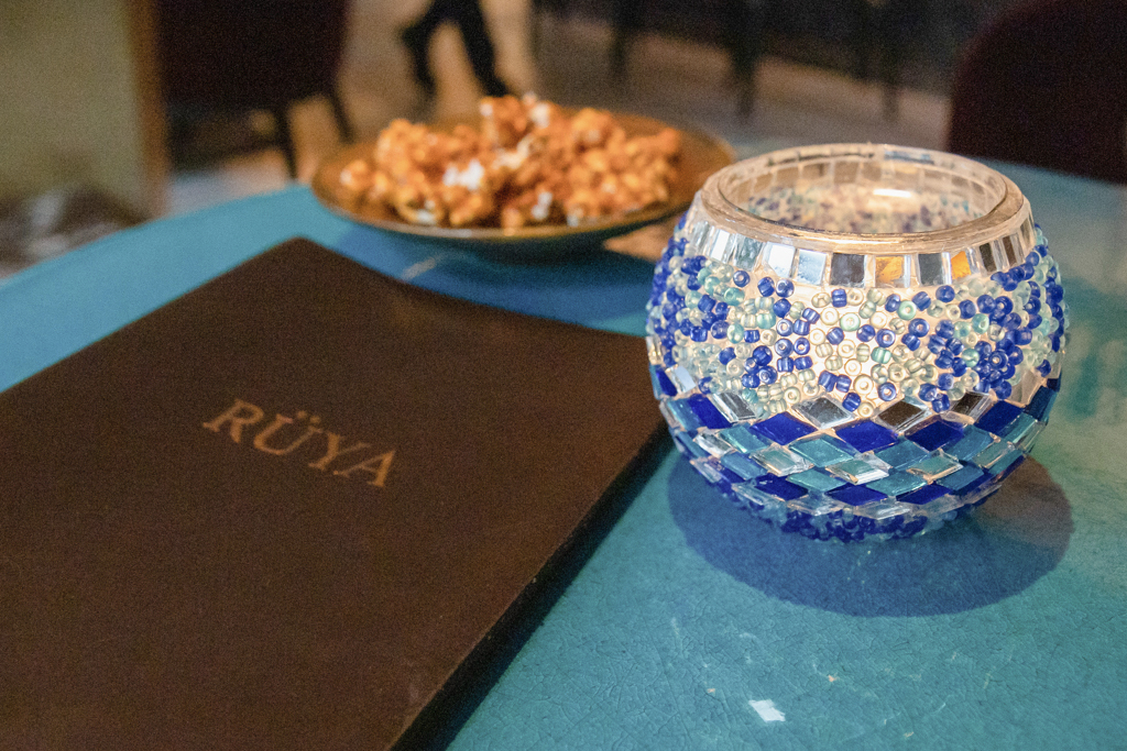In between, we are served some delicious Anatolian snacks. If new to the cuisine, these small plates might seem a bit fatty, but their full-bodied consistency proves the perfect accompaniment for the drinks. The lightest and our favourite of the selection is the Lahmacun, minced spicy lamb finely mixed with herbs, everything wrapped in flatbread. The Isli Patlican and the Börek, the first aubergine-based and the second feta-filled, provide different yet equally appetising options.