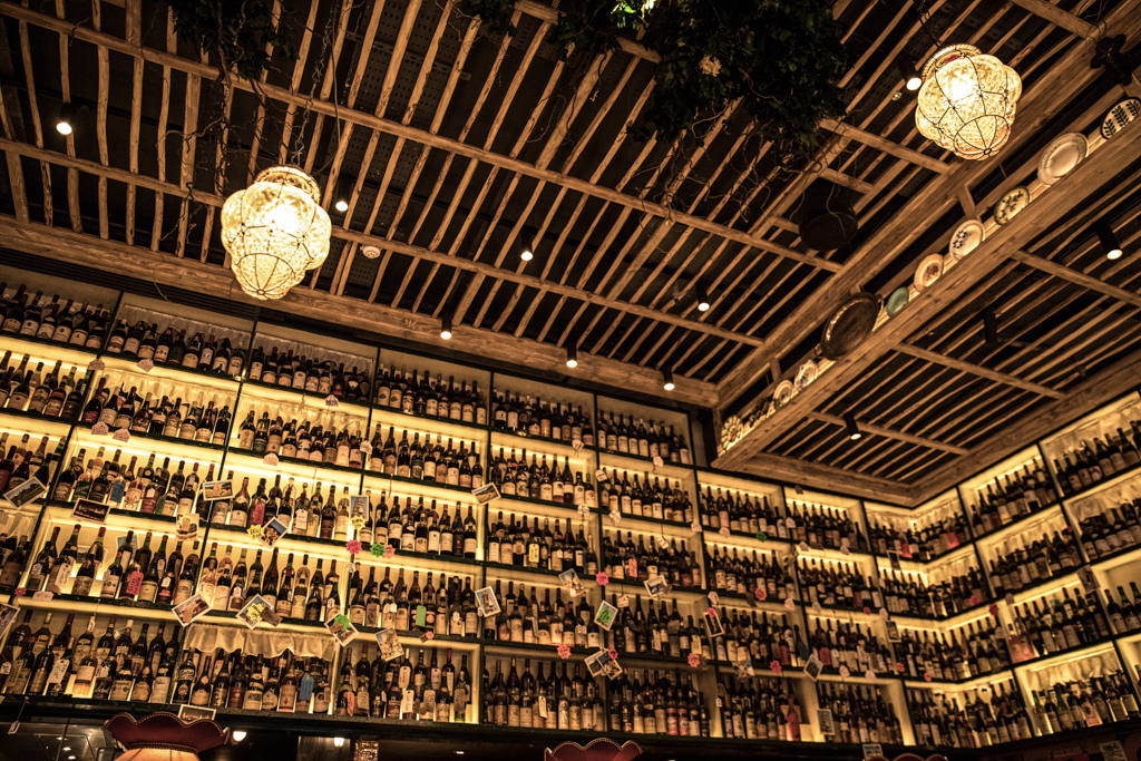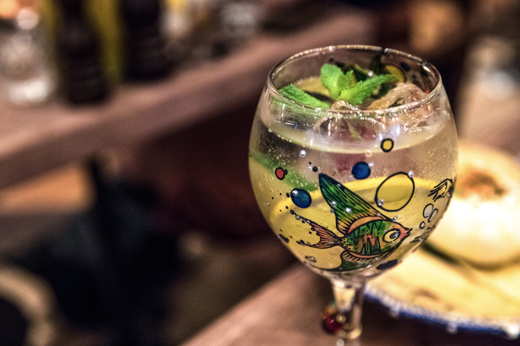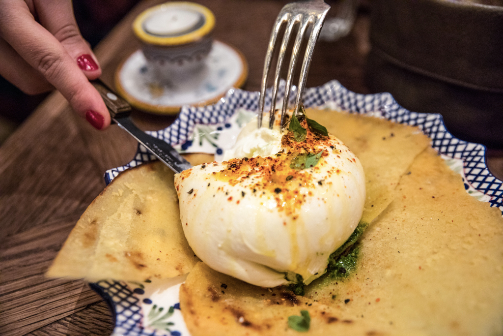 It’s pretty impossible not to gawp at the many bottles stacked against the walls, the plants hanging from the ceiling and the little lamps scattered around that recreate a romantic vibe and bring to mind charming grandma-style interiors. Accordingly, the menu is printed on large laminated paper and the crockery is hand-painted following traditional artisan patterns.