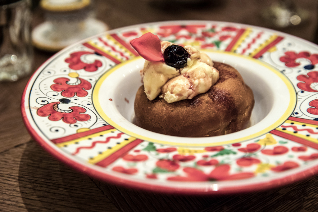 In a proper trattoria style, the Tiramisù is scooped out of a casserole dish. The coffee wets the biscuits without drowning them, while the cream is of the perfect consistency. However, preannounced by its regal name, Lady Baba dominates the finale. Especially in Southern Italy, people can get very picky about this type of dessert, as the amount of rum soaking the pastry could spoil everything. With this version, though, not only is the liquid correctly added, but the sweet custard manages to blissfully crown it all.