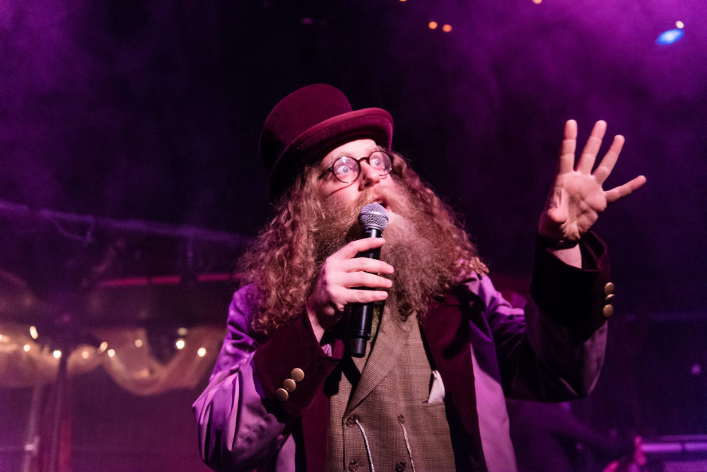 Playing The Wanderer, Caplan switches between humorous tunes, performed with stand-up comedy flair, and mournful, heartfelt numbers as the events in the story take a bleak turn. He is full of energy and interacts with the audience to guide them through the show and its various moods. The talent of the five performers makes the production captivating on every level. They consistently keep the right tempo and instil a sense of urgency, melancholy and warmth all at once.