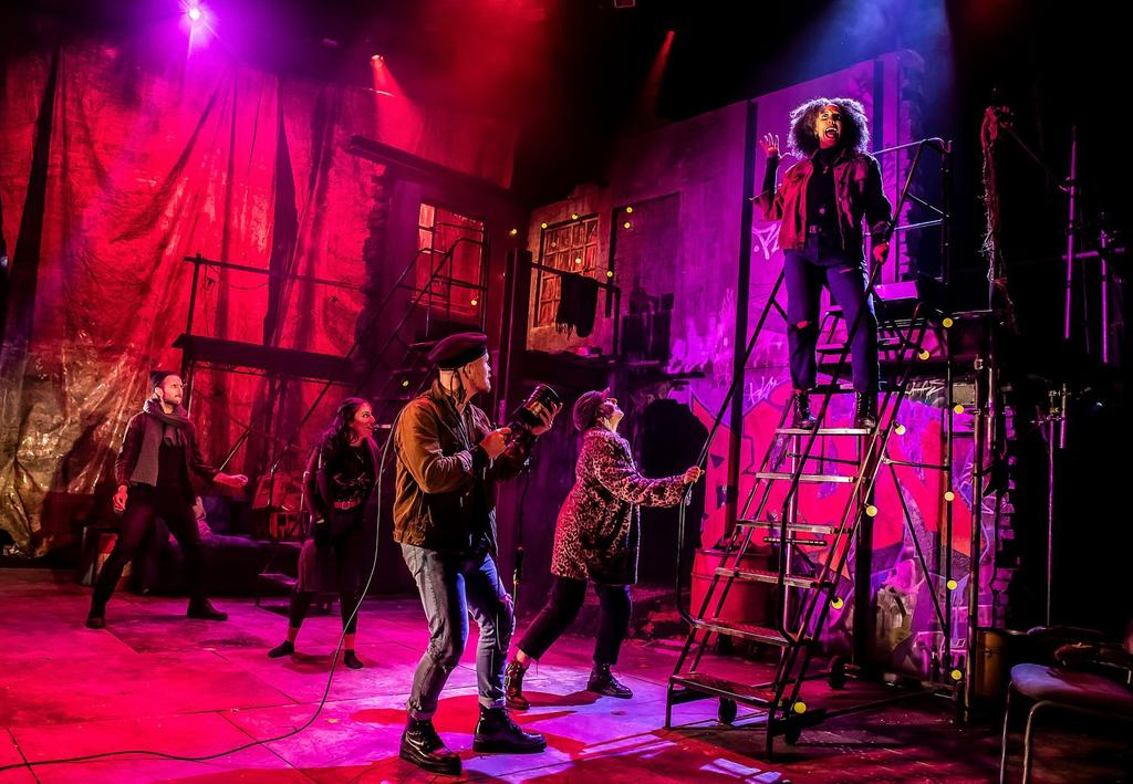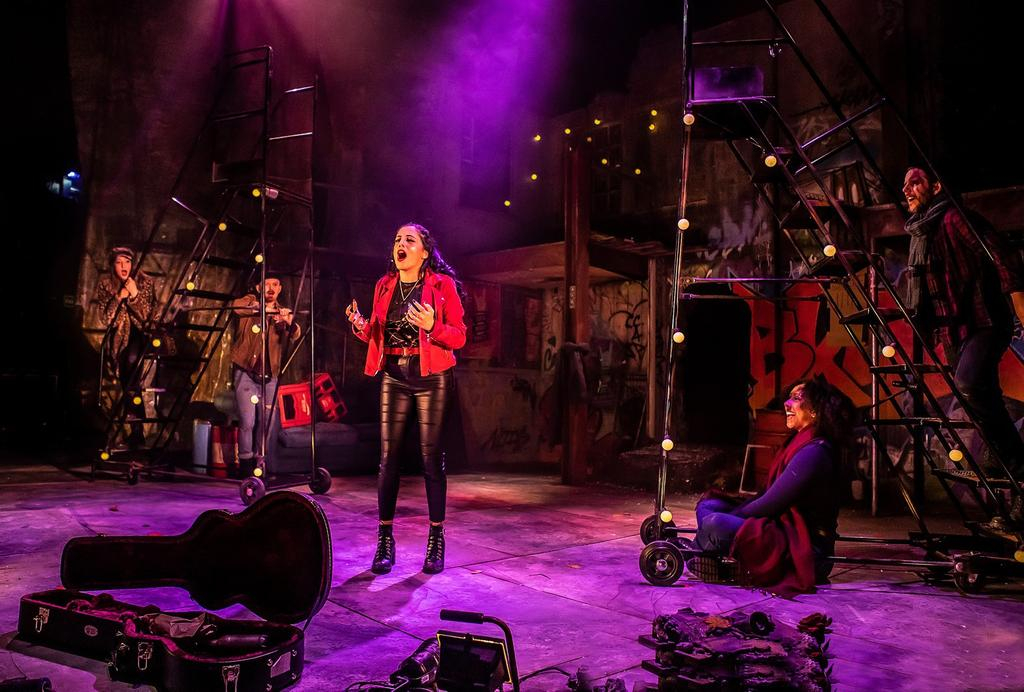 The five-piece ensemble plays a group of Brooklyn street folk, led by narrator Street Singer (Andrew Patrick-Walker) to tell the story of young Parisian Brooklyn (Hiba Elchikhe), who comes to America to look for fame and her father. Upon arrival, she achieves instant fame with her voice – much to the jealous disgust of fading diva Paradice (Emily-Mae), who challenges her to a winner-takes-all contest at Madison Square Garden, the climax of the show.