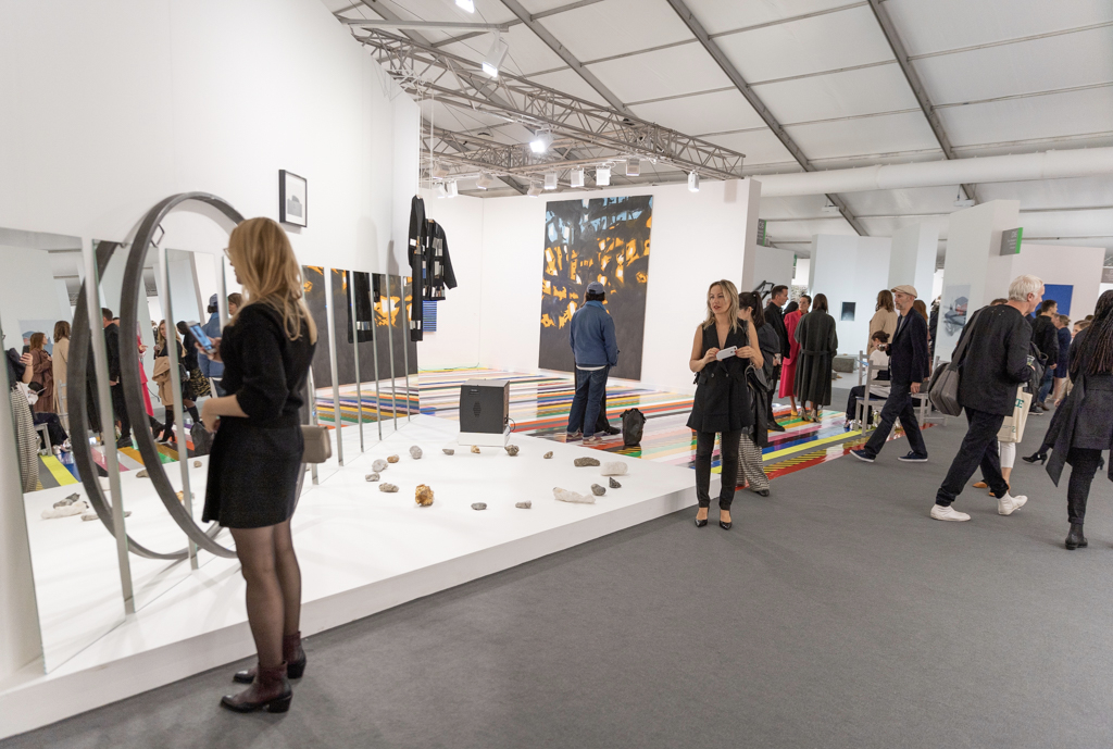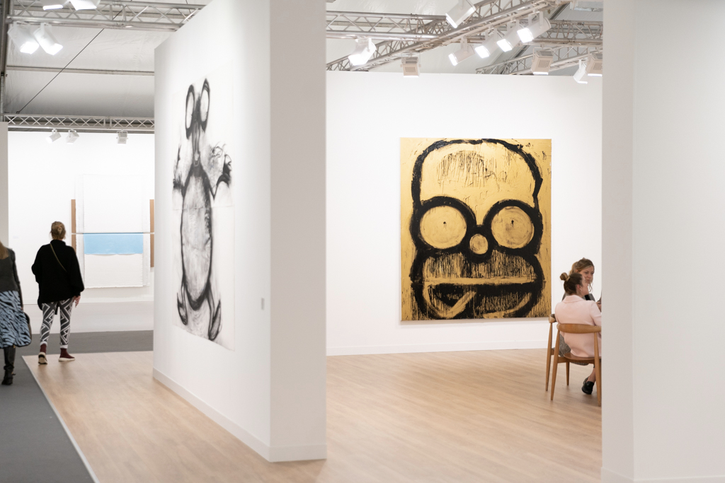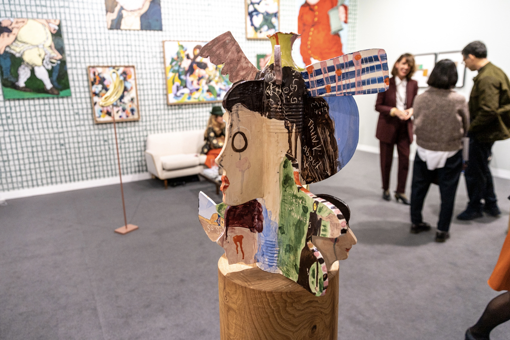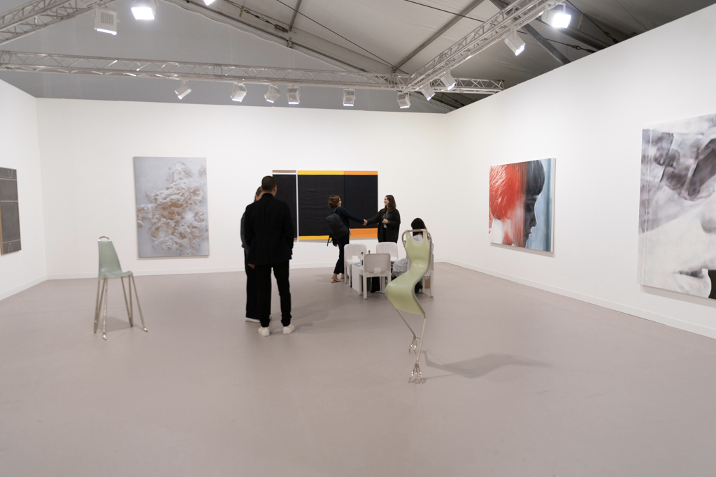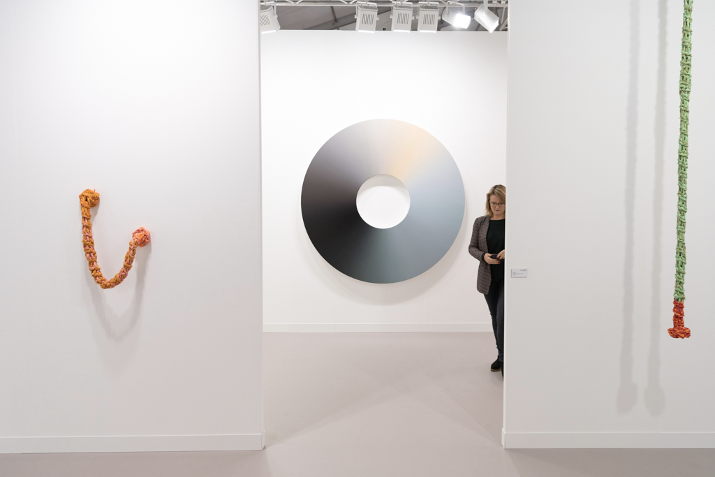 Without doubt, the most interesting booths focus on only one or two artists; in amongst the endless variety of paintings, sculptures and everything in between, coherent and clean presentations stand out. Art powerhouse Gagosian (booth E3), for instance, is presenting a huge solo display of work by Sterling Ruby, where bold, colourful paintings sit alongside one of Ruby’s “Basin Theology” ceramic bowl sculptures.