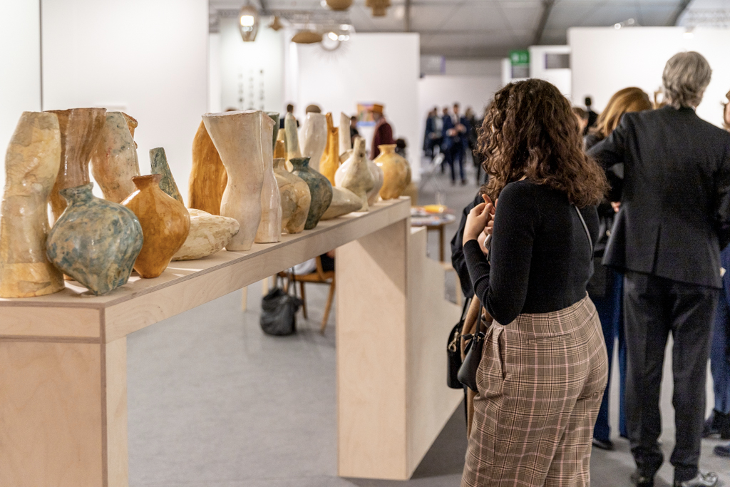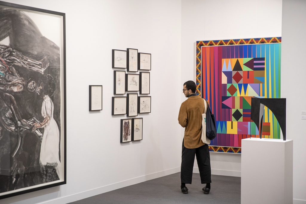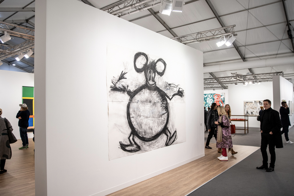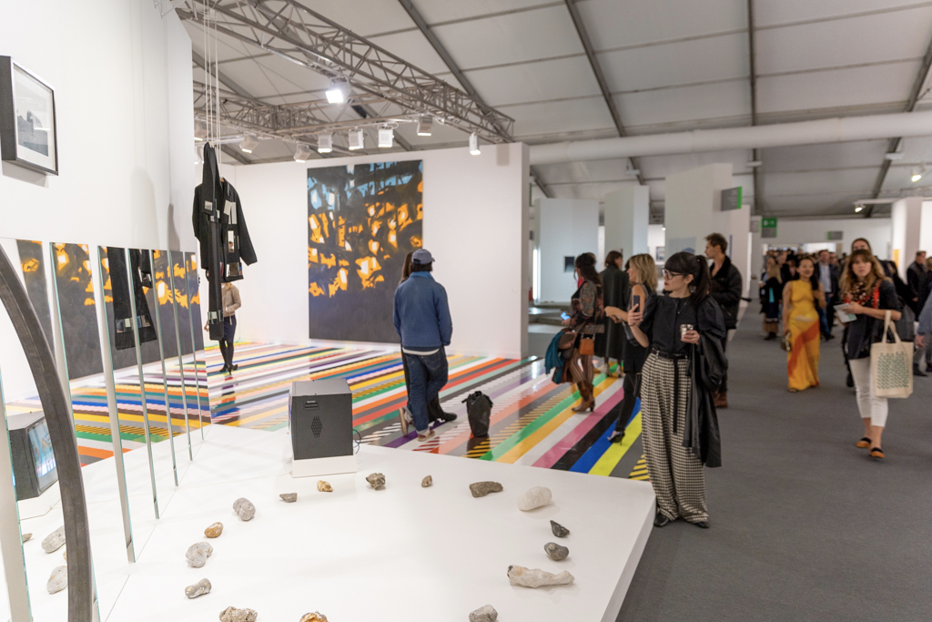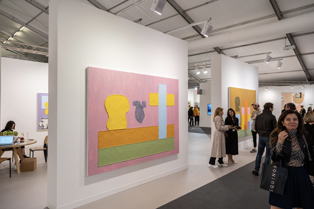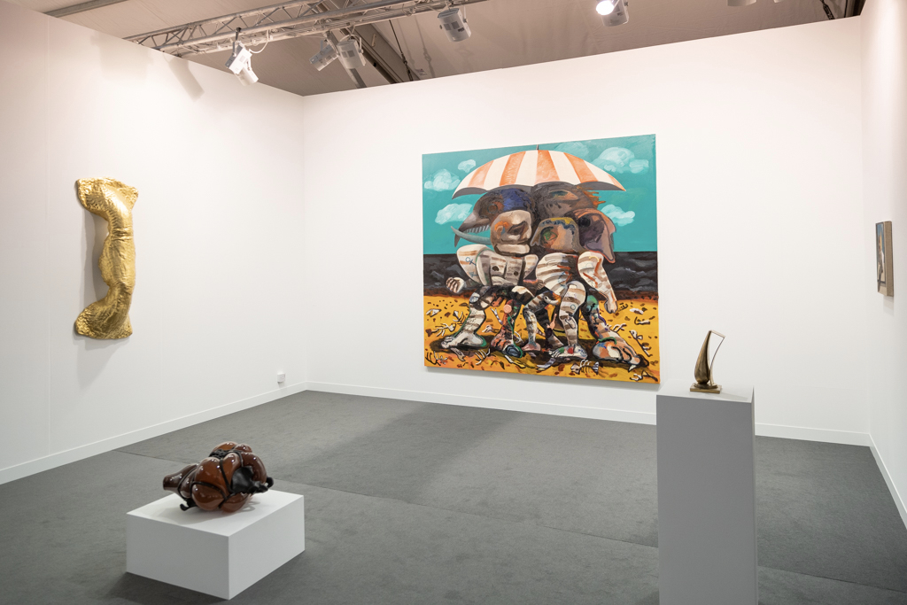 Without doubt, the most interesting booths focus on only one or two artists; in amongst the endless variety of paintings, sculptures and everything in between, coherent and clean presentations stand out. Art powerhouse Gagosian (booth E3), for instance, is presenting a huge solo display of work by Sterling Ruby, where bold, colourful paintings sit alongside one of Ruby’s “Basin Theology” ceramic bowl sculptures.
