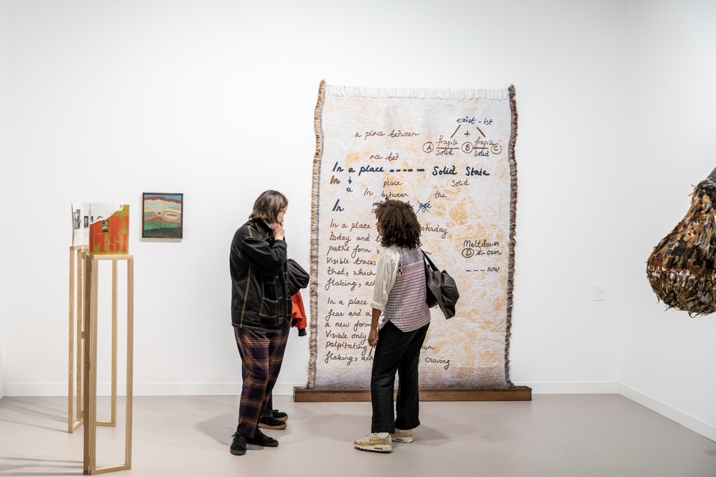 Stephen Friedman Gallery (booth A10), on the other hand, has had success with a two-person display, and is the deserved winner of the Frieze Art Fair Stand Prize. One side of the booth features new paintings by Swedish artist Mamma Andersson, which act as poetic evocations of the natural world. On the other side, and also capturing a distinct sense of place in his work, Brazilian artist Tonico Lemos Auad presents new abstract textiles and sculptures that take the form of imagined landscapes.